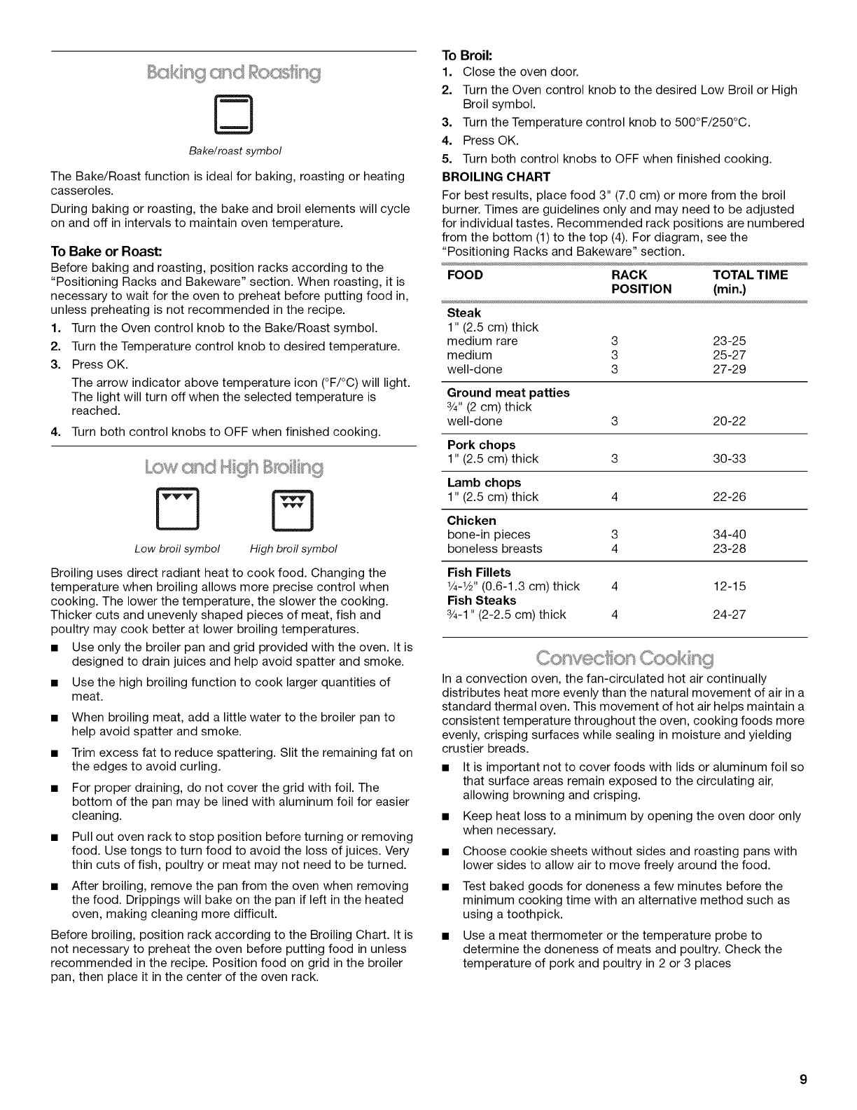 Low and High Broiling .................................................................. 9