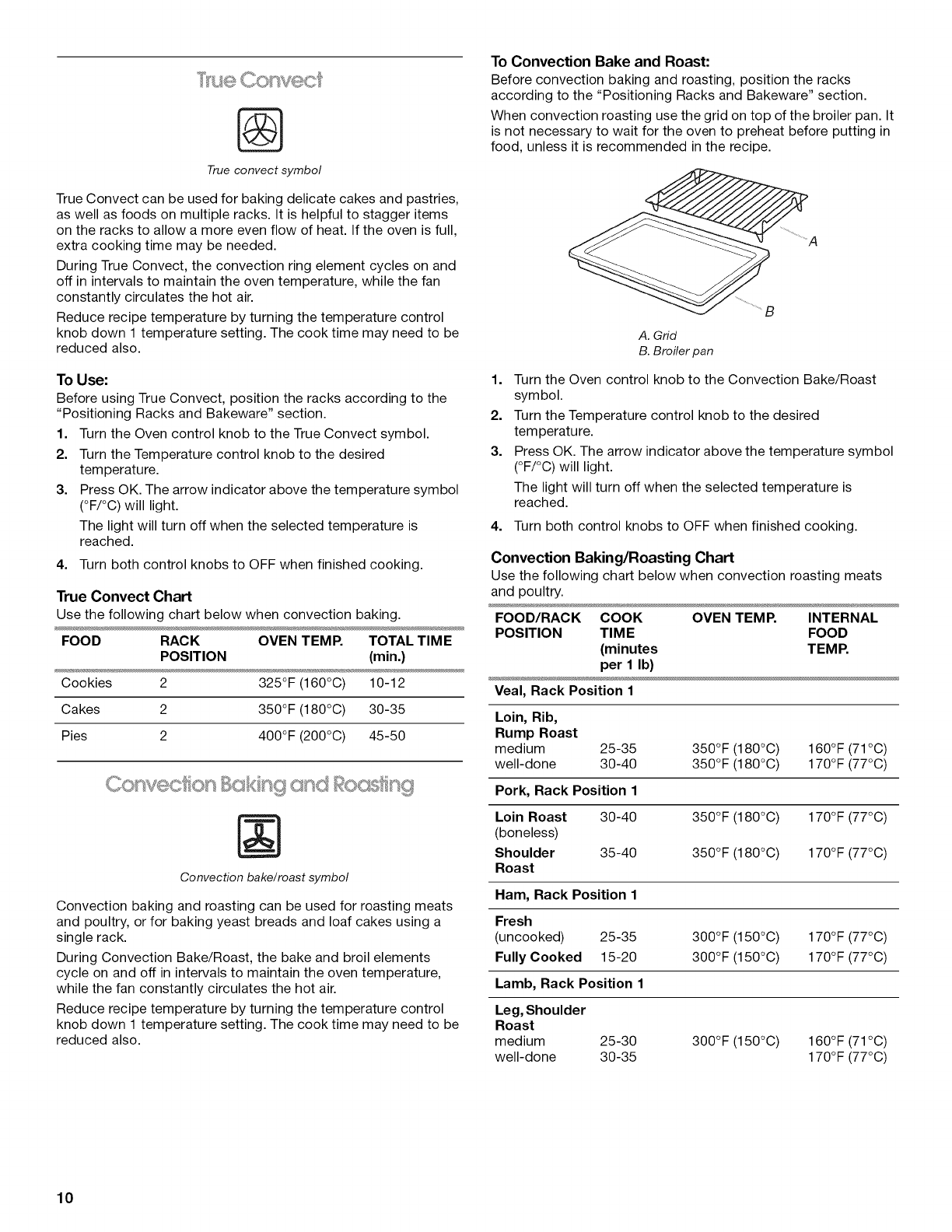 Convection Baking and Roasting .............................................. 10