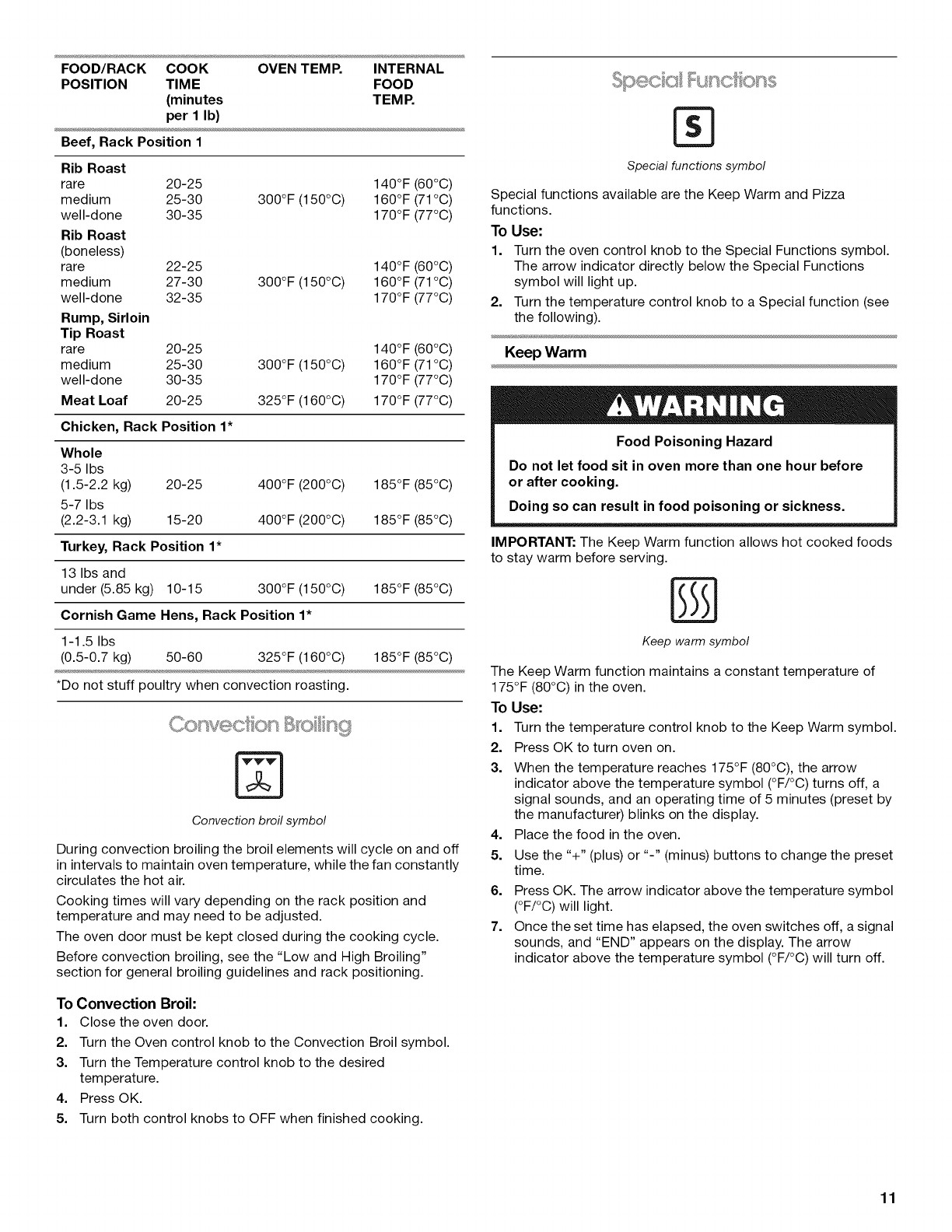 Convection Broiling .................................................................... 11