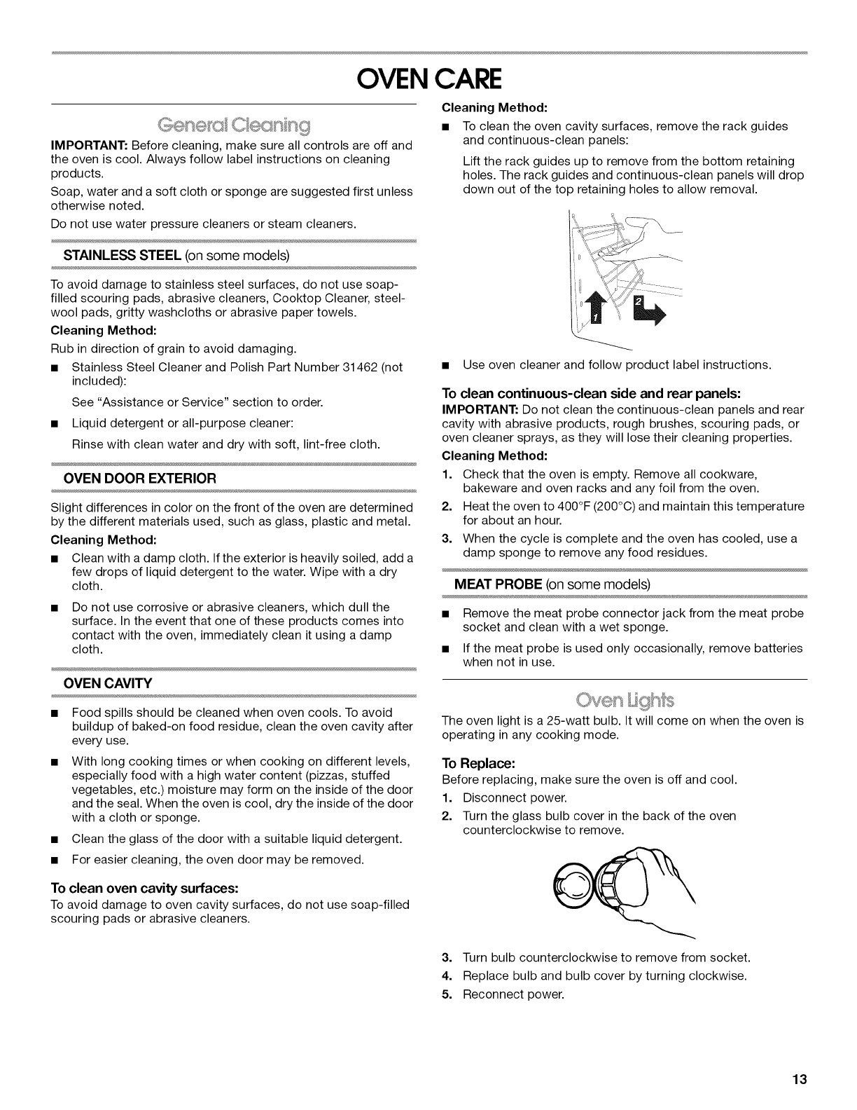 Oven Lights ................................................................................ 13