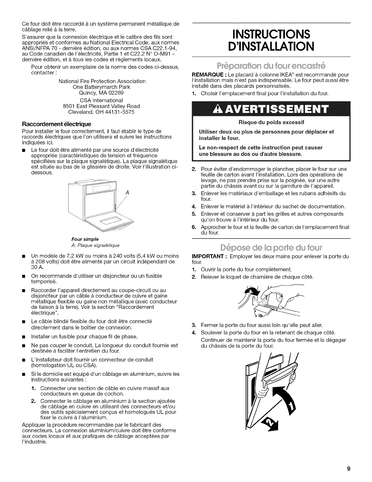 single oven weight of 140 Ibs (63.5 kg) or a double oven