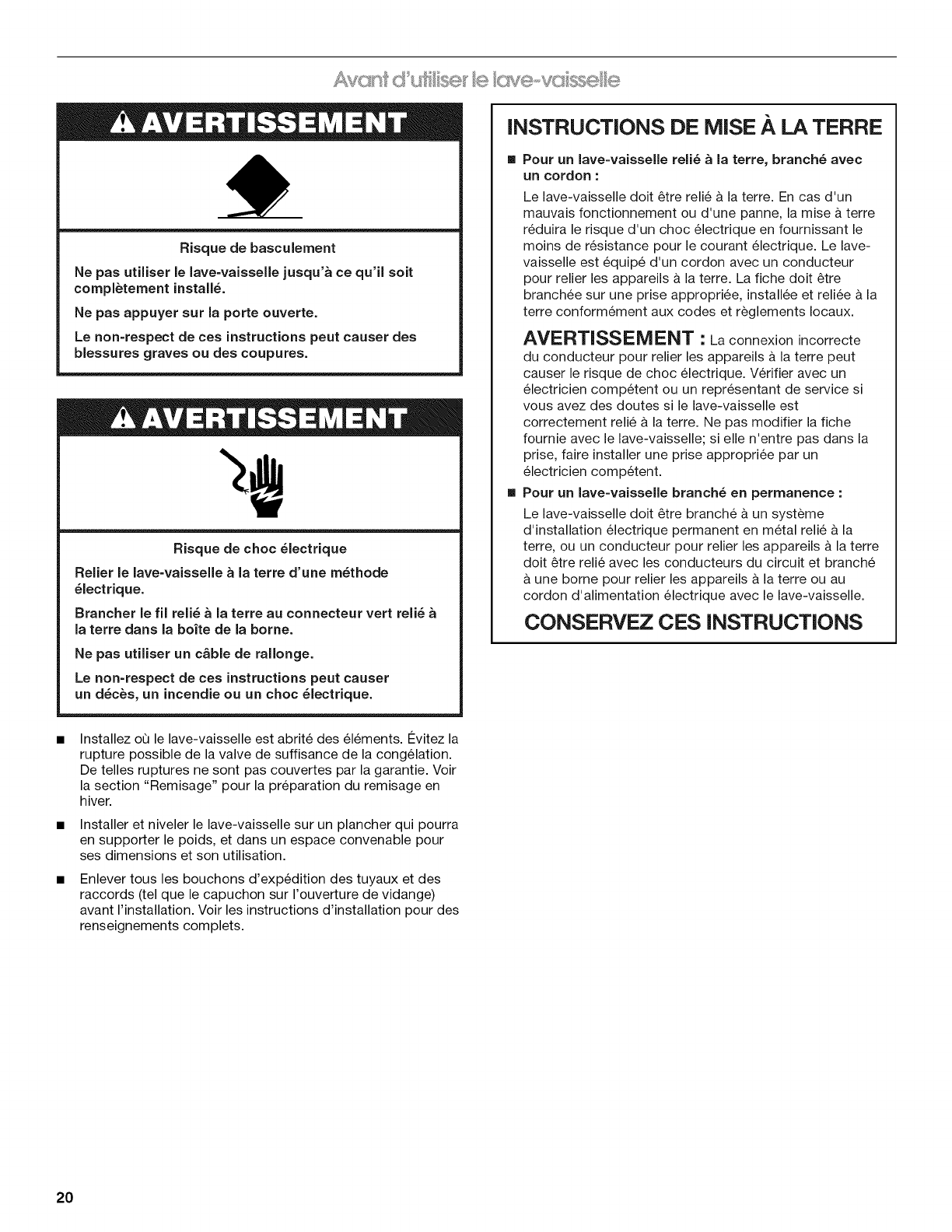 Avant d'utiliser le lave-vaisselle ................................................. 20