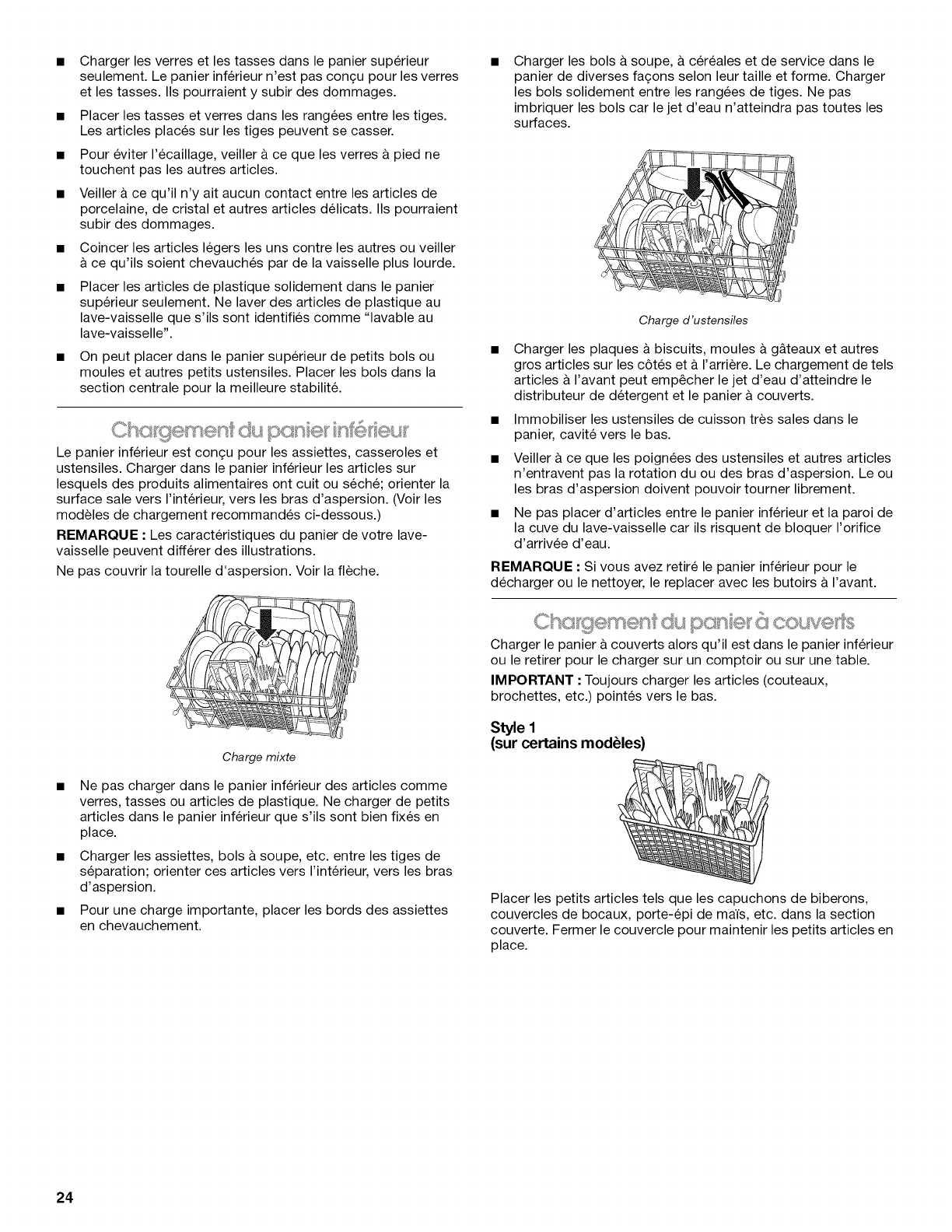 Chargement du panier a couverts ............................................. 24
