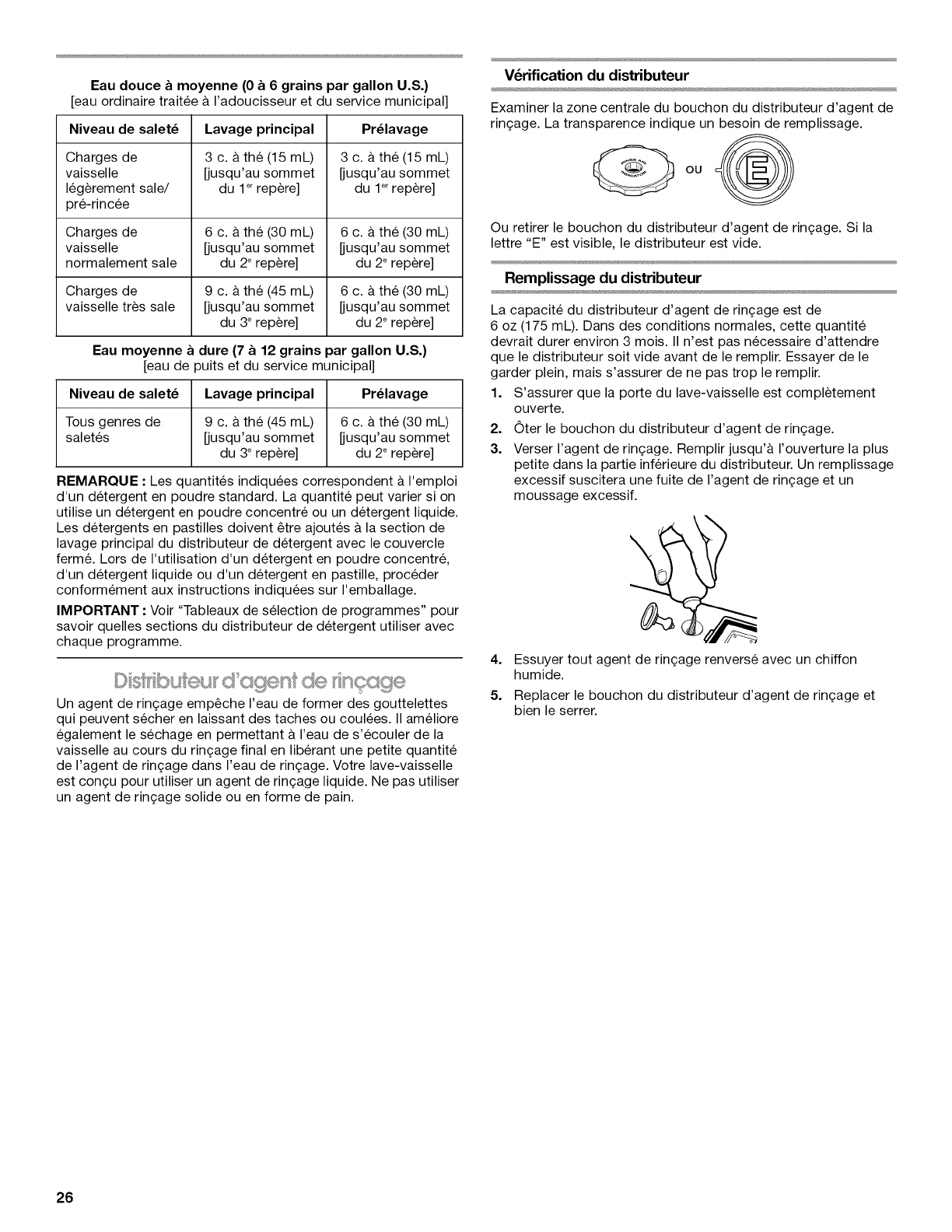Distributeur d'agent de rin;age .................................................. 26