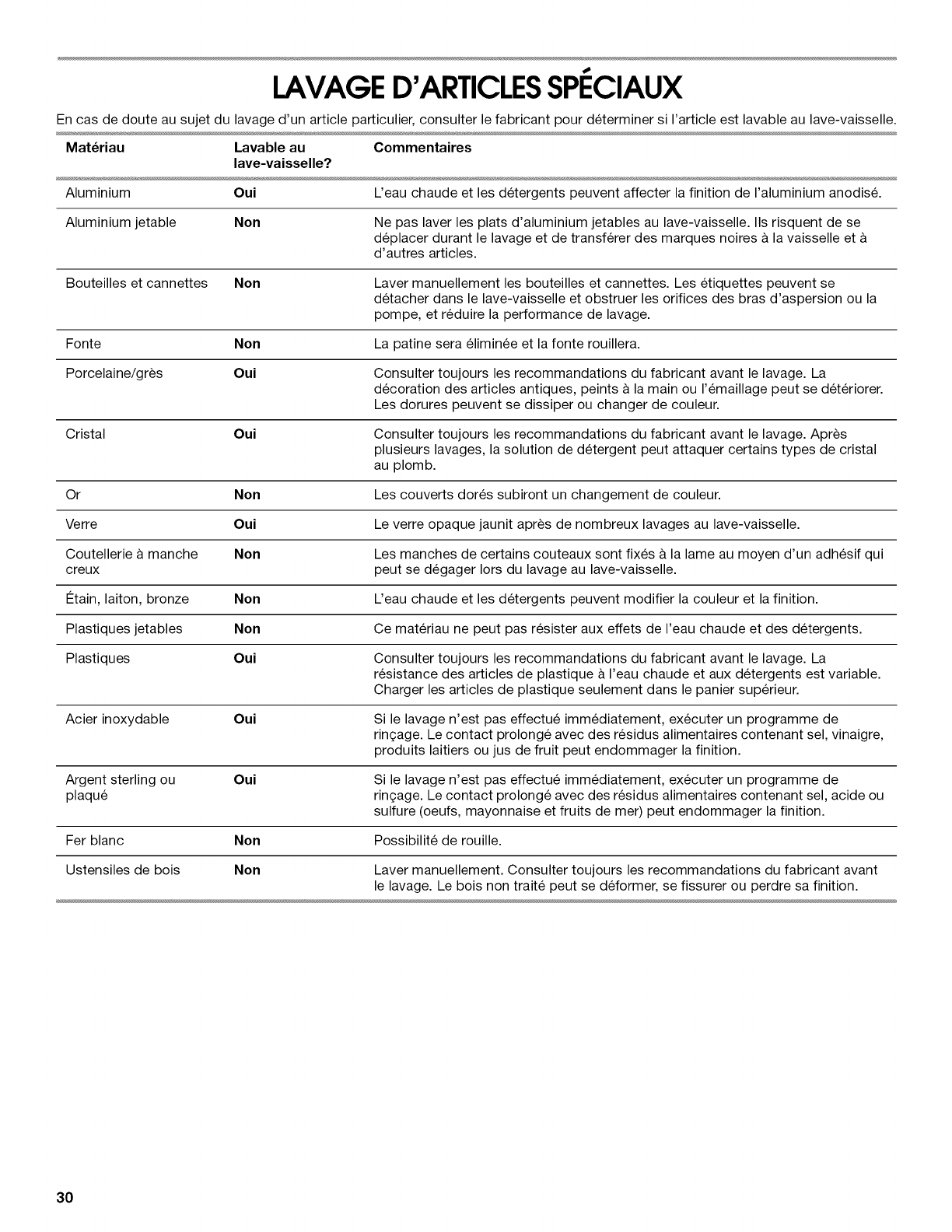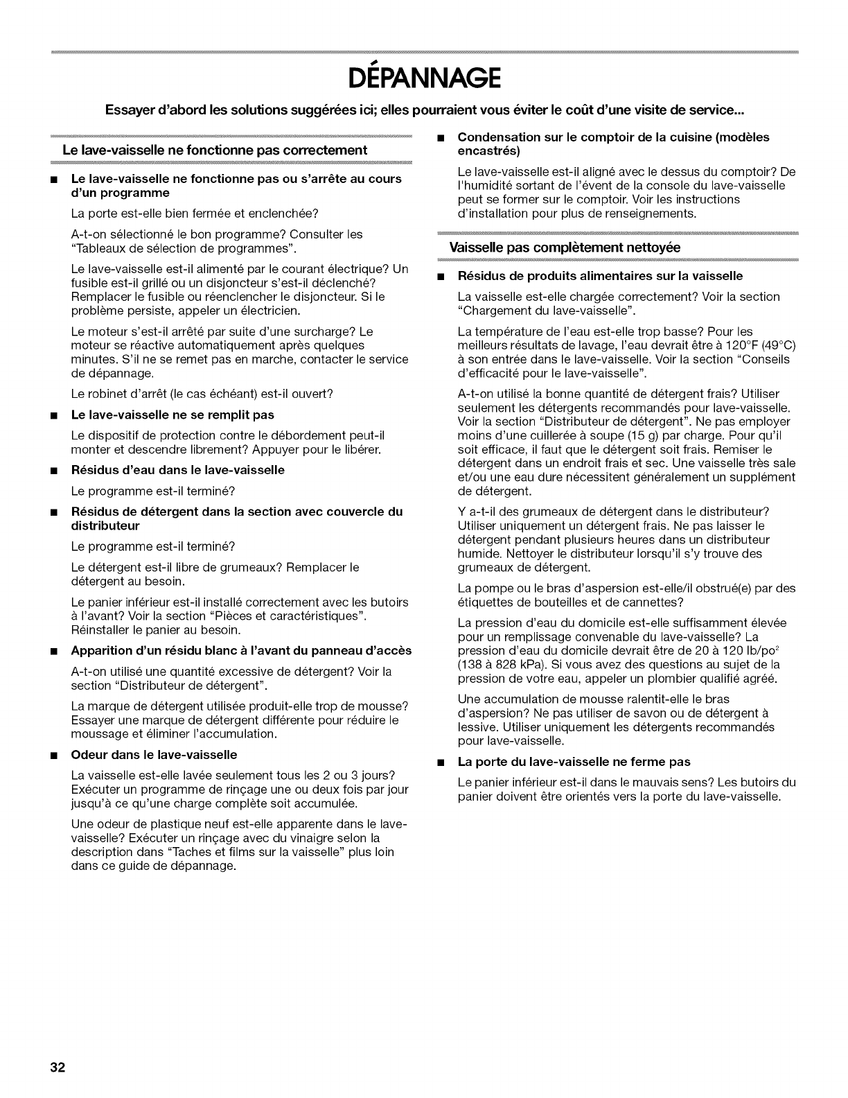 ENTRETIEN DU LAVE-VAISSELLE ............................................. 31
