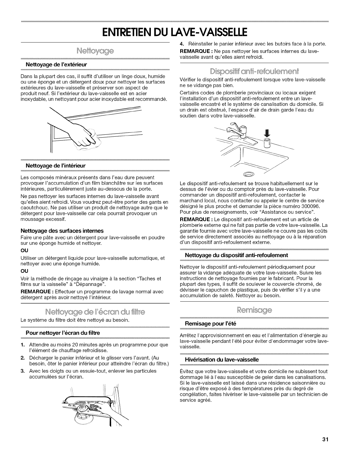 Nettoyage de I'ecran du filtre ..................................................... 31