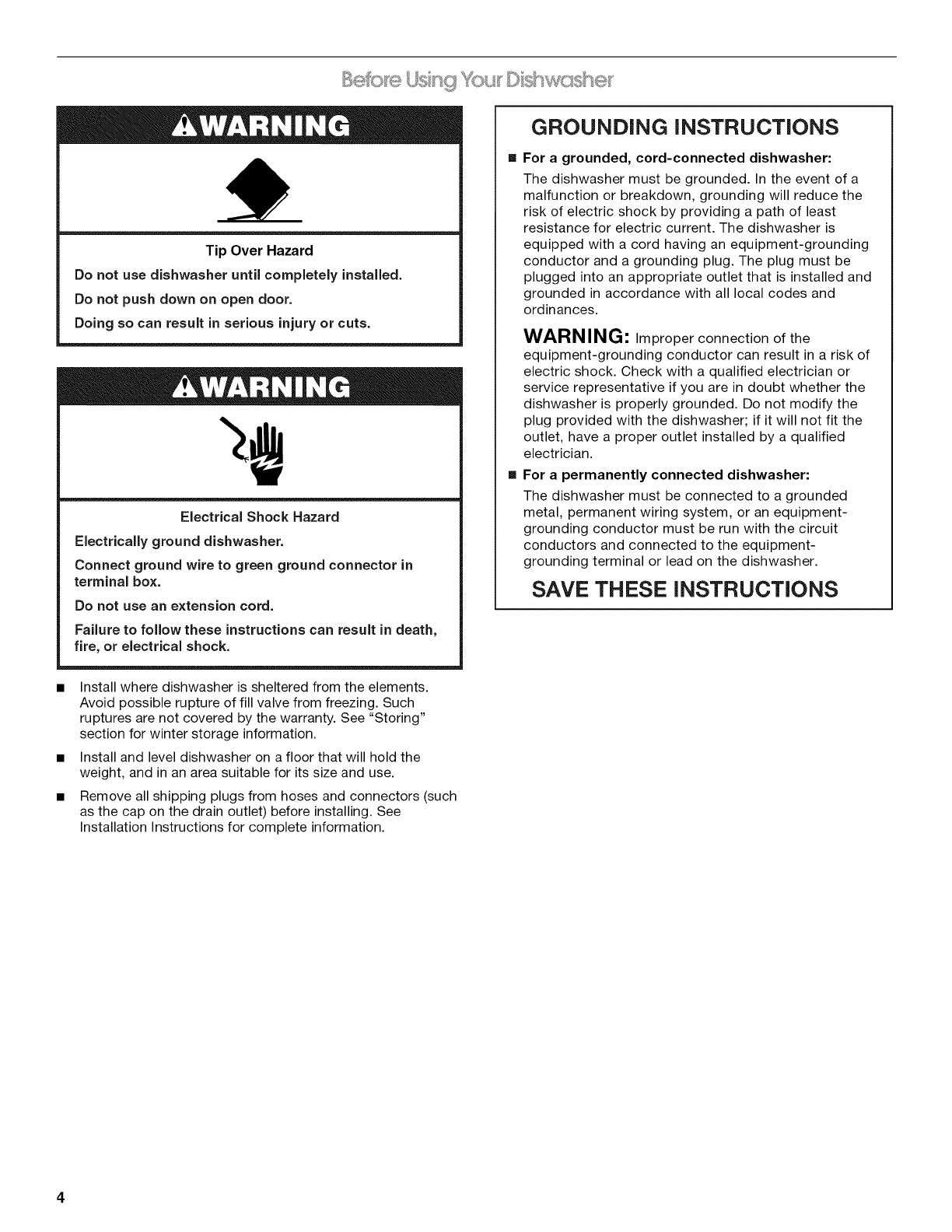 Before Using Your Dishwasher .................................................... 4