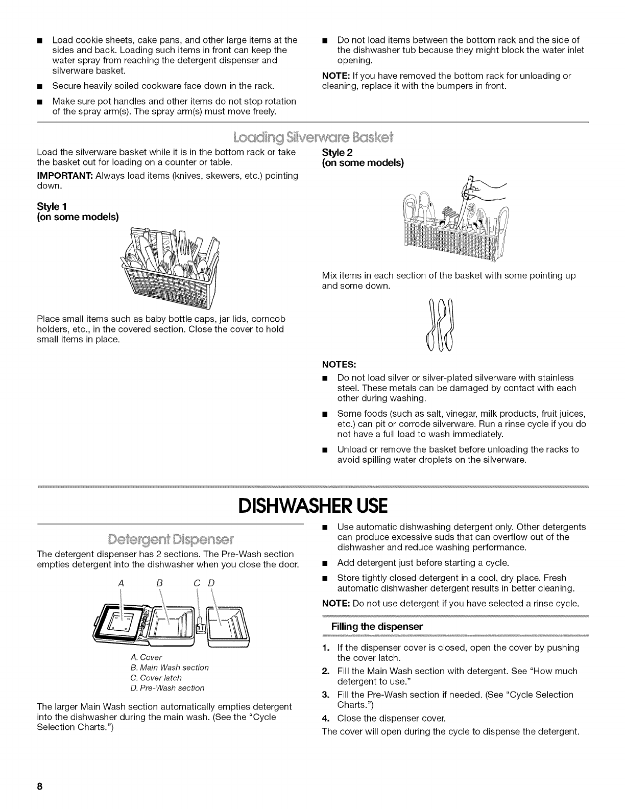 Loading Silverware Basket .......................................................... 8