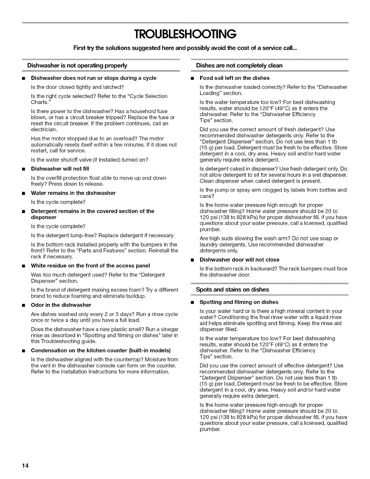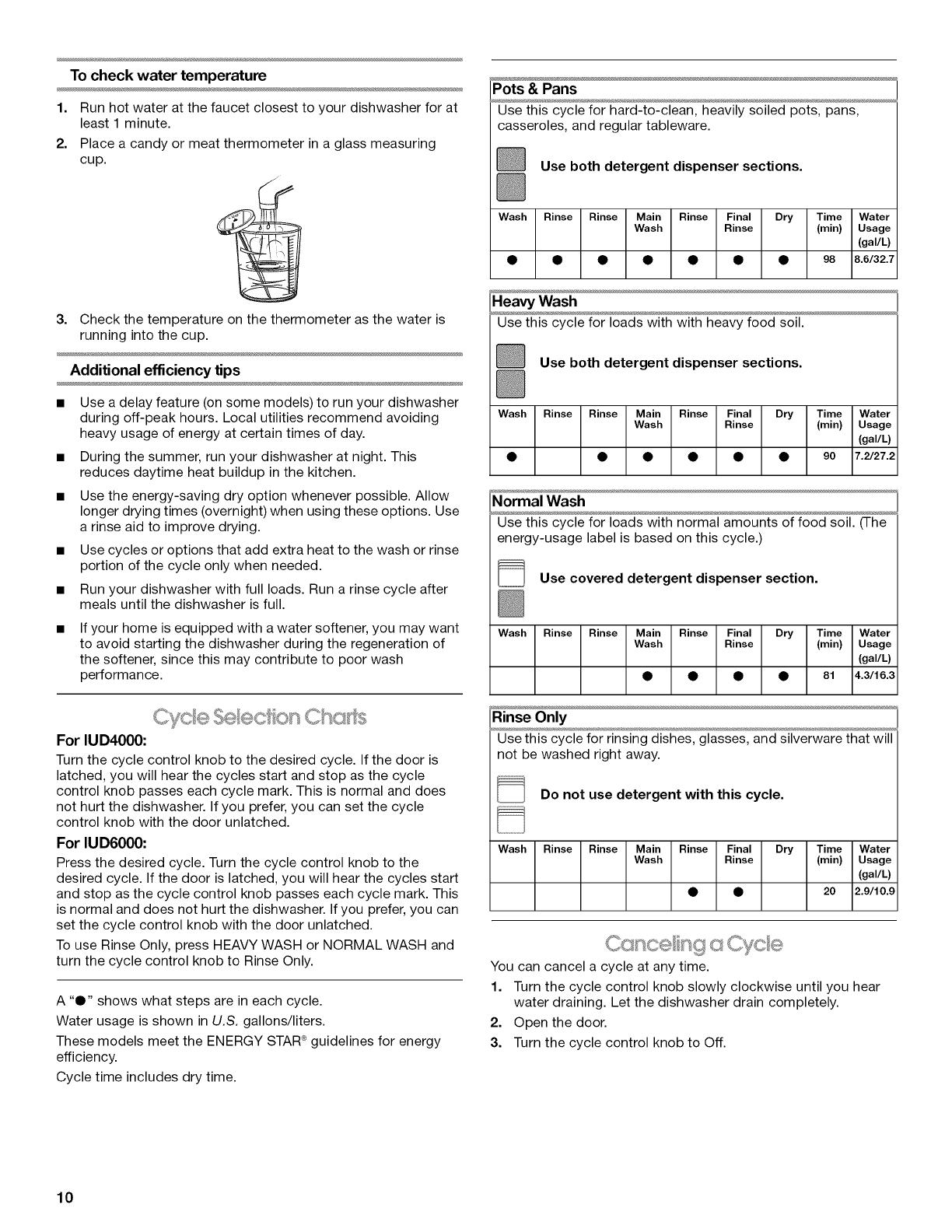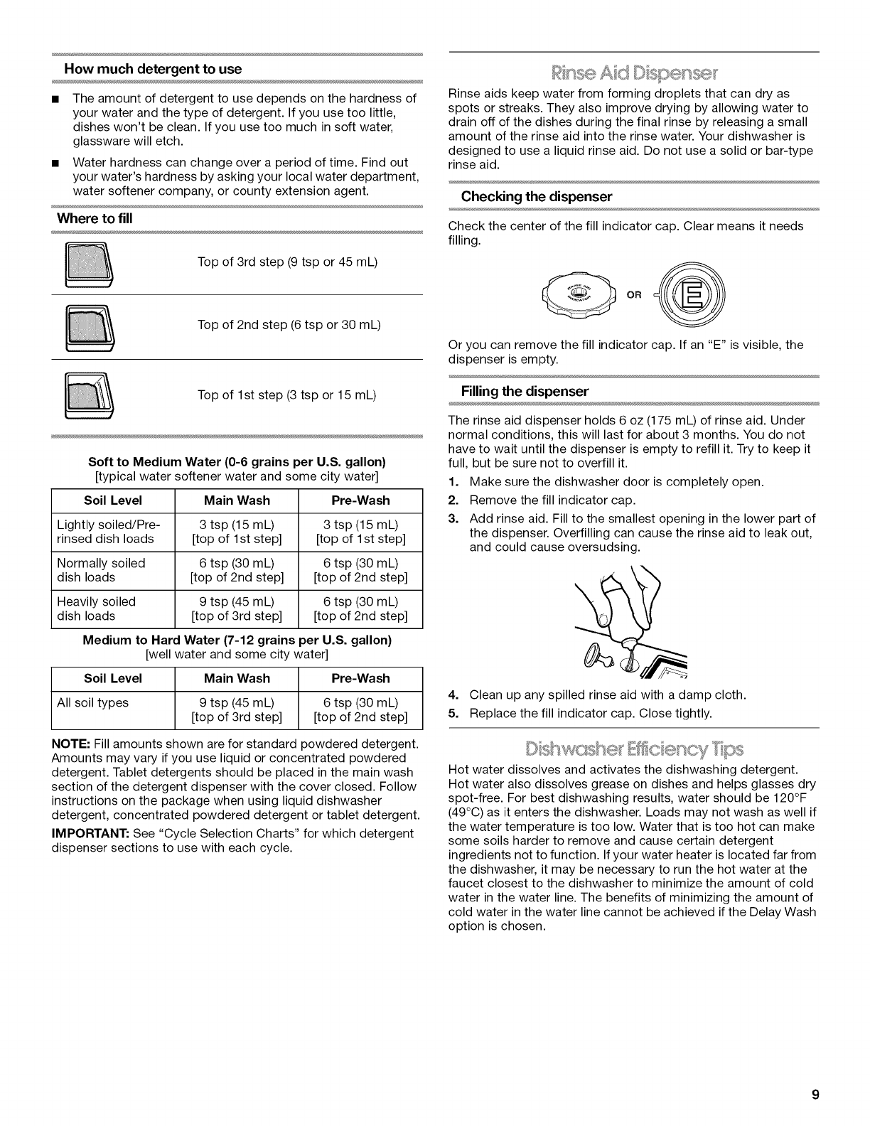 Dishwasher Efficiency Tips .......................................................... 9