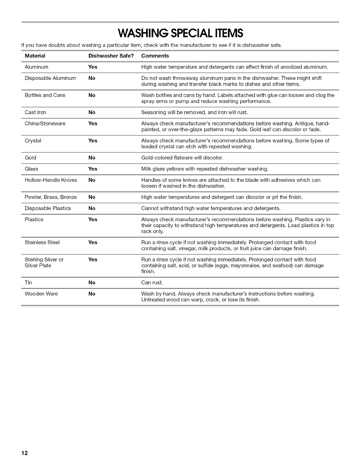 WASHING SPECIAL ITEMS ......................................................... 12