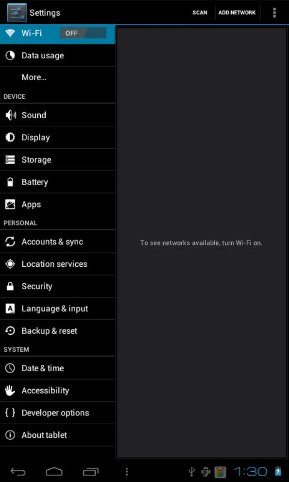 Backup & reset: Backup data/account, set factory data reset,etc.