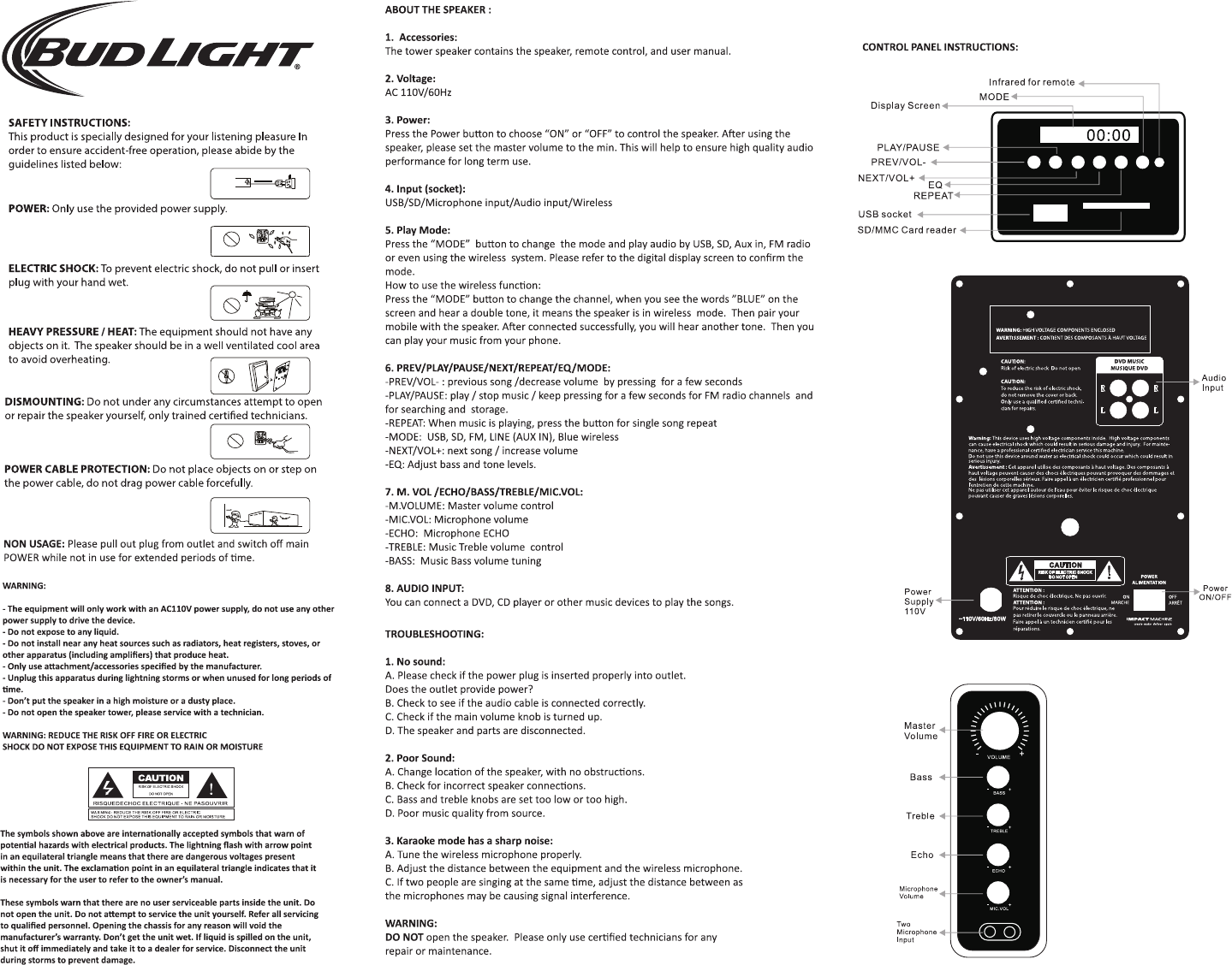 IMPACT MACHINE DESIGN BUD-LIGHT Speaker Tower User Manual Manual