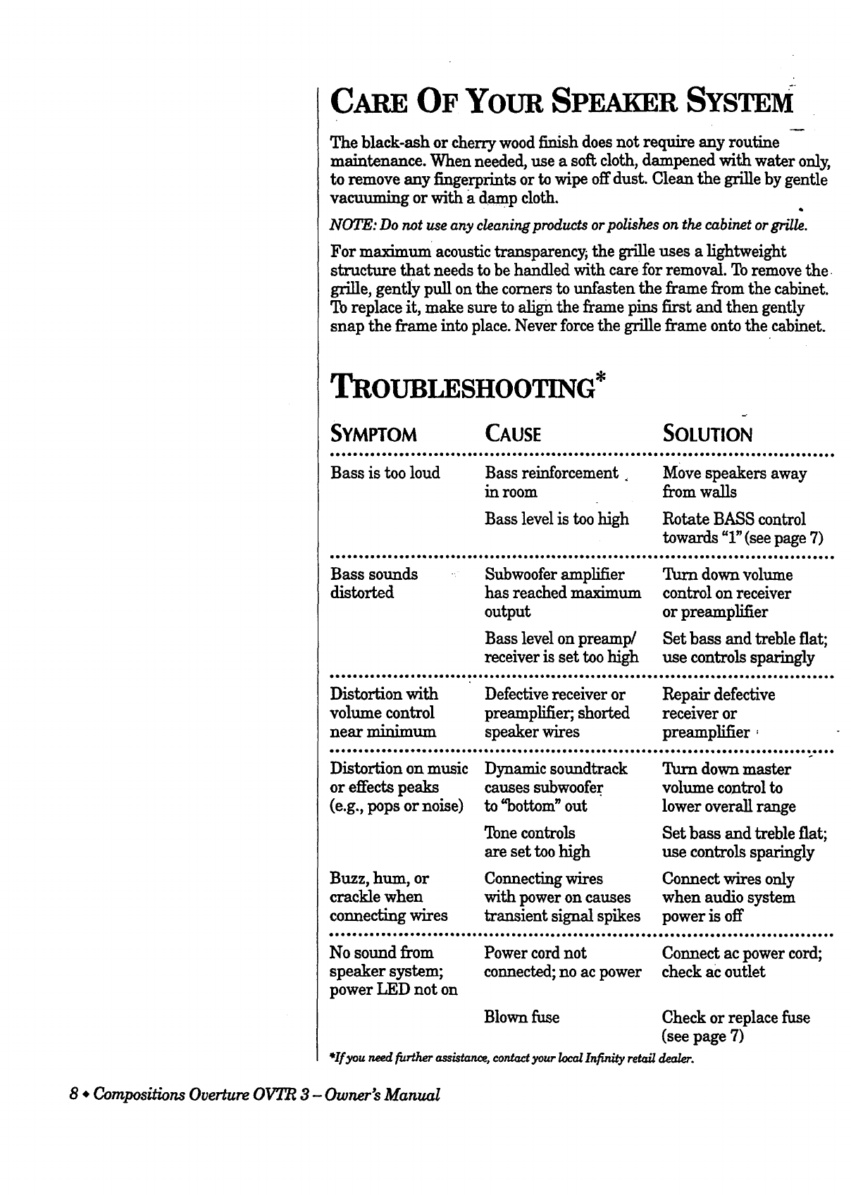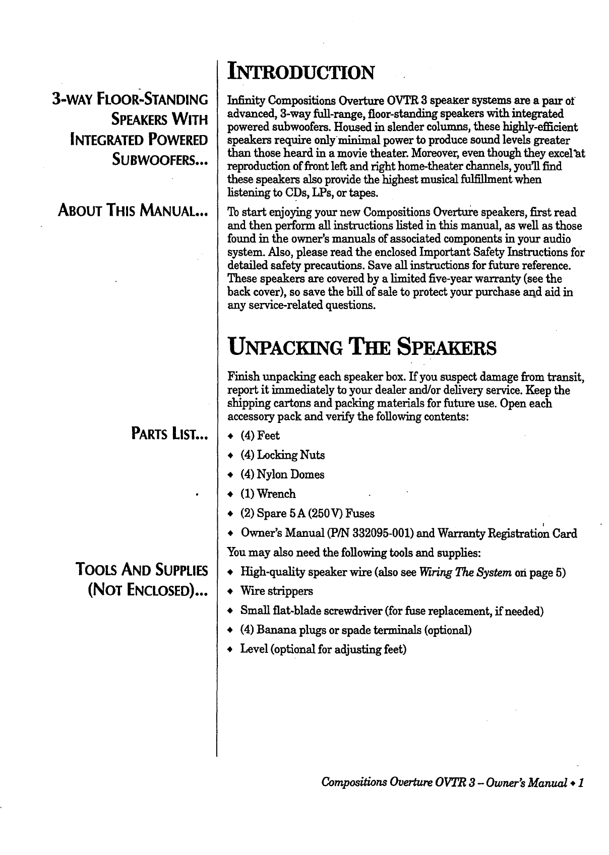User Manual: INFINITY INFINITY Speakers Manual INFINITY Speakers Owner's Manual, INFINITY Speakers installation guides