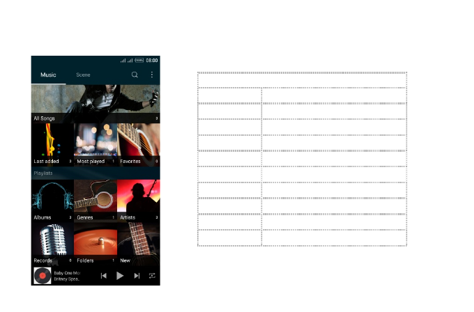 icon to enter Music library, then touch and hold an artist, a song, or an album, some options