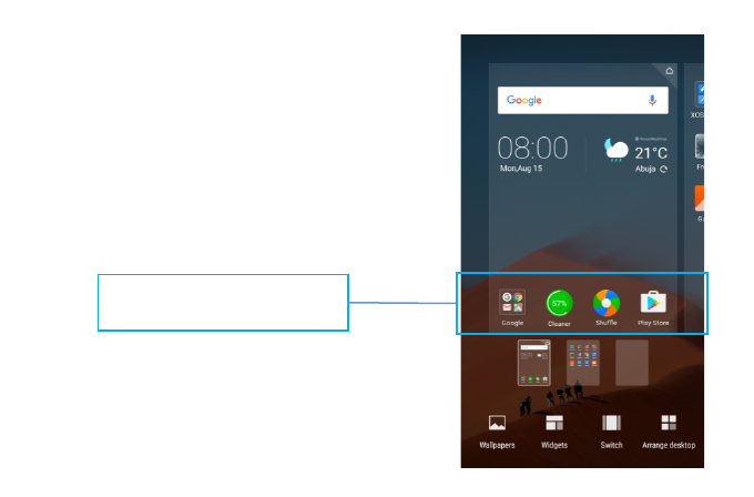 screen with shortcuts, widgets, folders, and