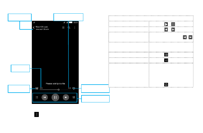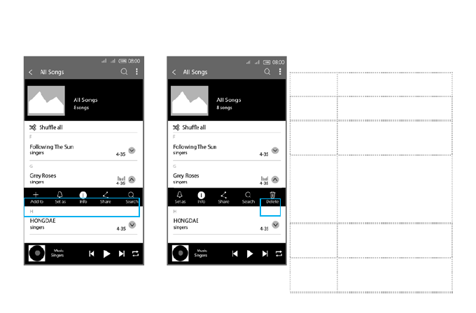 icon to enter Music library, then touch and hold an artist, a song, or an album, some options
