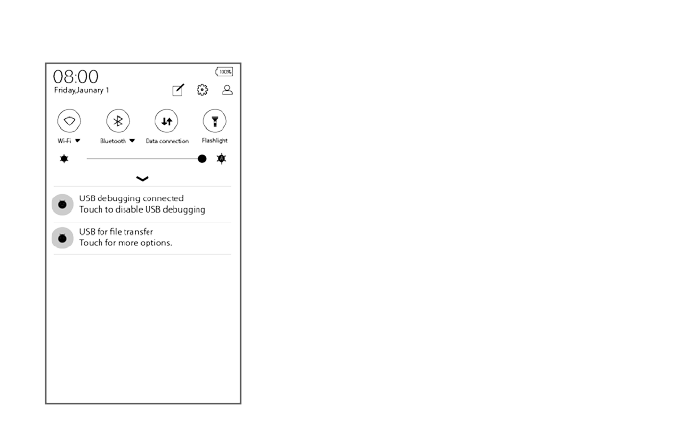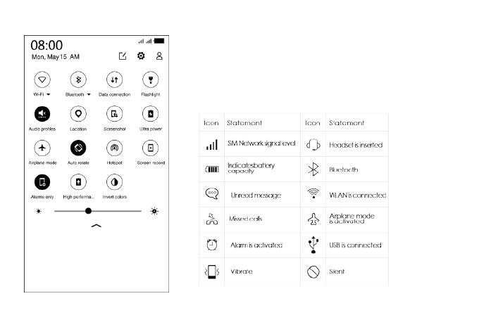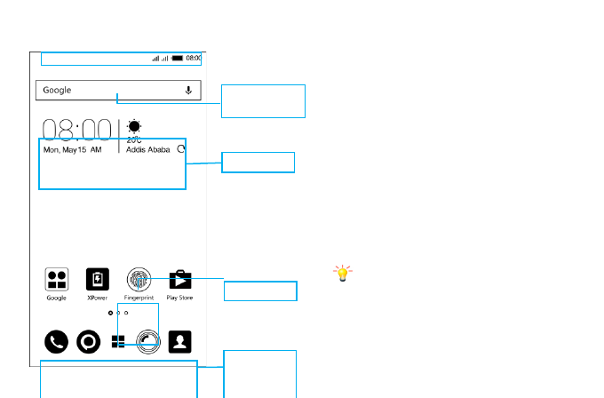 Power on status, press and hold to enter phone options (Power off, Reboot, Airplane