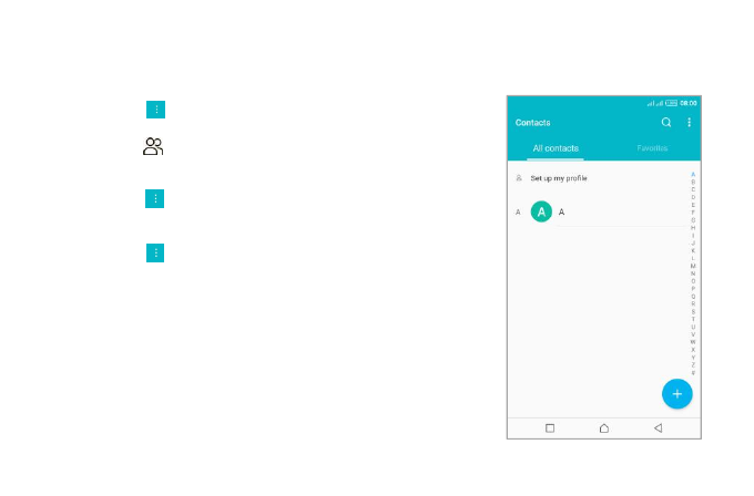 touch Contacts icon to enter contacts list, you can drag contacts list up or down to scroll list.