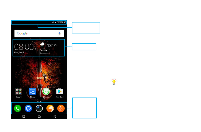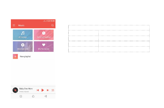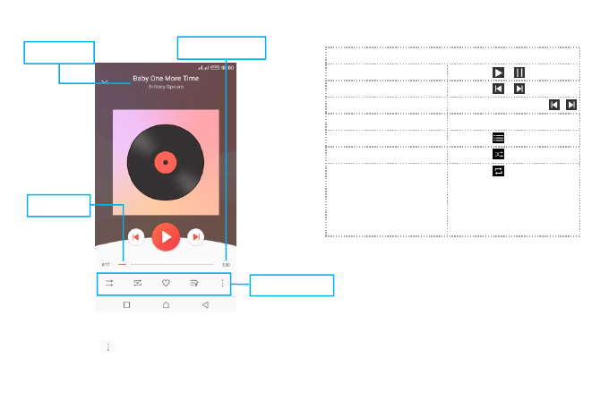 Open special functions or additional options. Try it: From Application menu, touch Music icon to