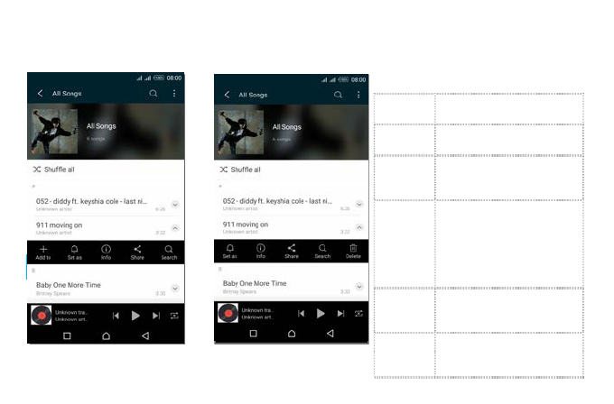 icon to enter Music library, then touch and hold an artist, a song, or an album, some options