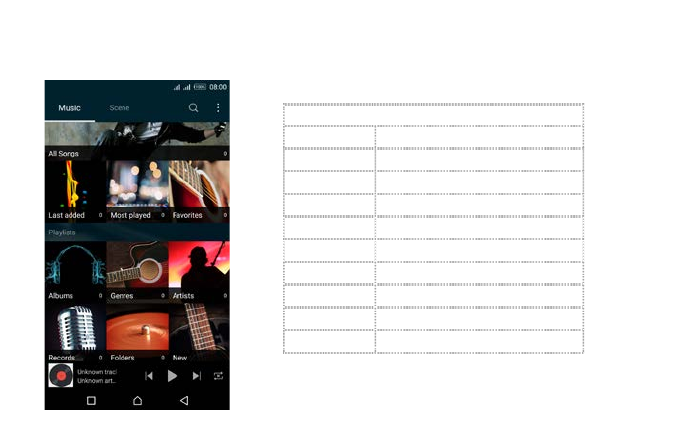icon to enter Music library, then touch and hold an artist, a song, or an album, some options