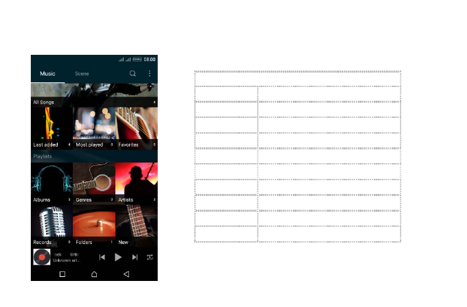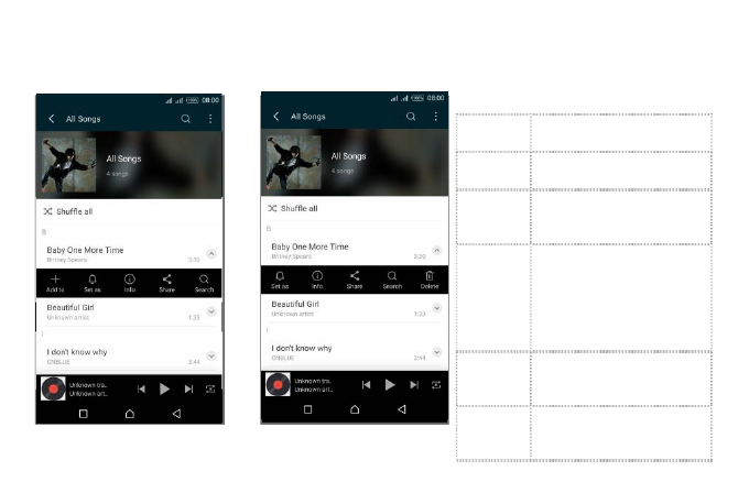 icon to enter Music library, then touch and hold an artist, a song, or an album, some options