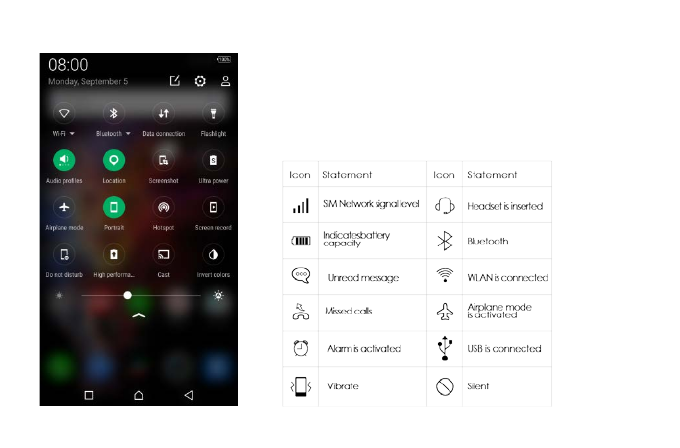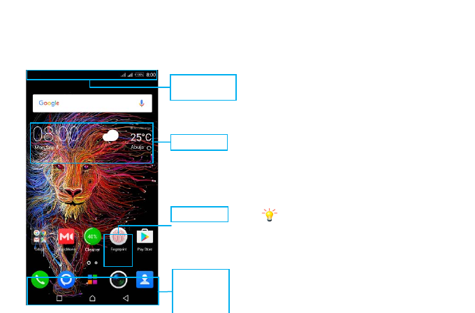 Power on status, press and hold to enter phone options (Power off, Reboot, Airplane