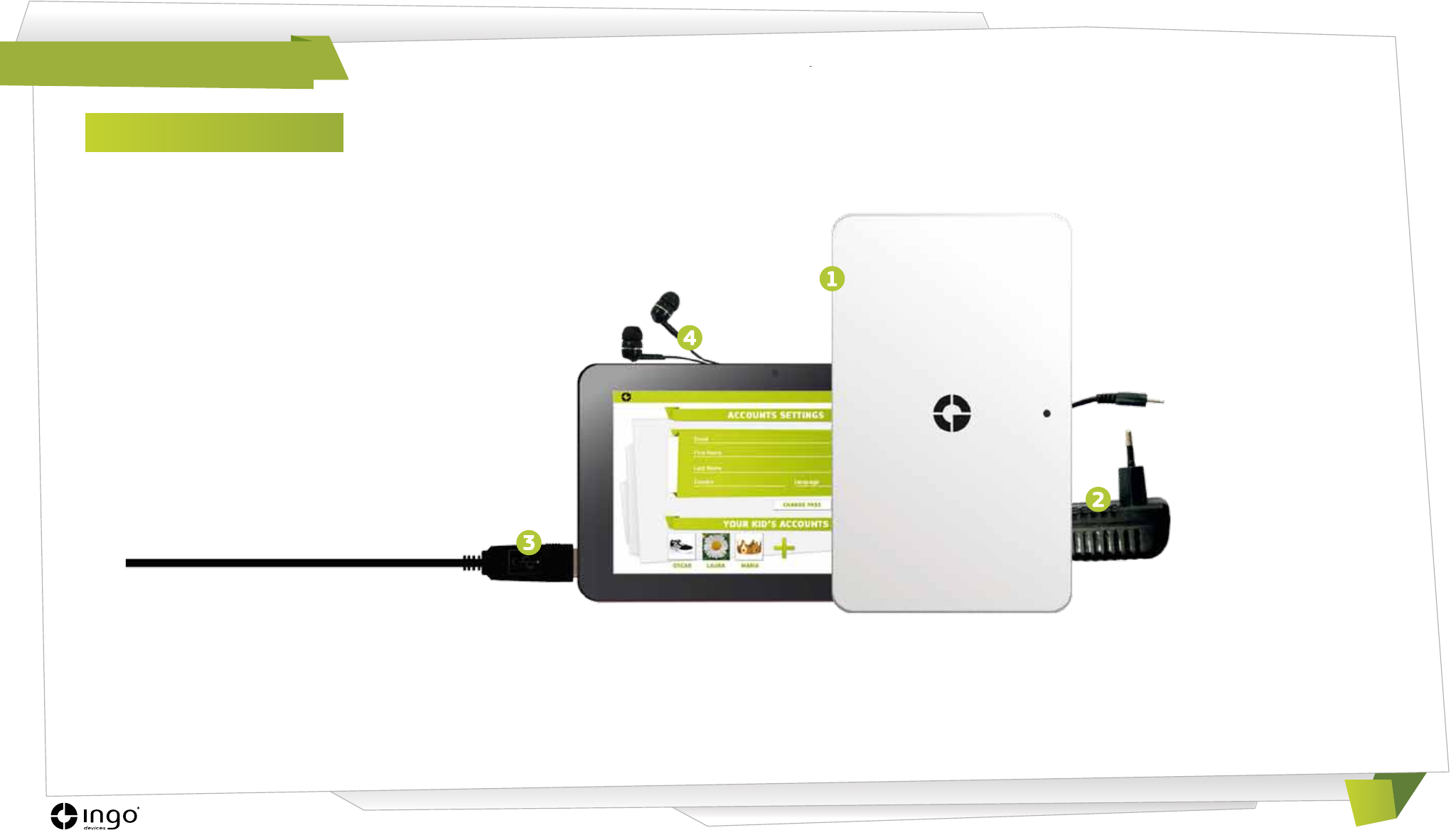 • Only charge the IngoKids tablet with the supplied power adaptor