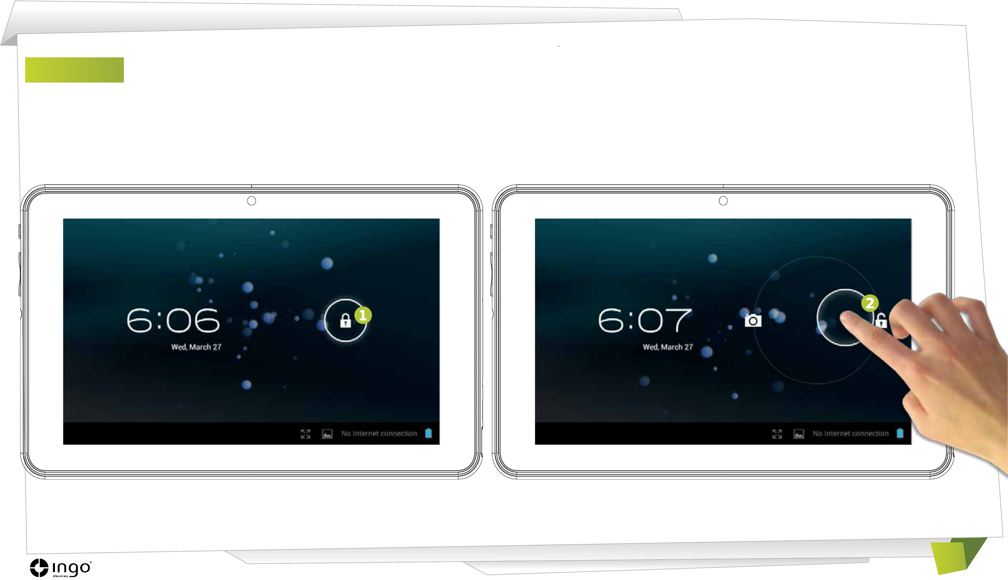 Your Ingo tablet locks automatically the screen aer some time inactive. To unlock select the lock icon and slide it to the open lock.