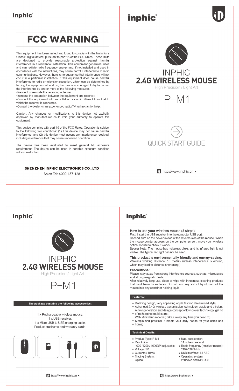 INPHIC ELECTRONICS P-M1 2.4G Wireless mouse User Manual
