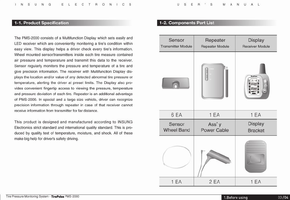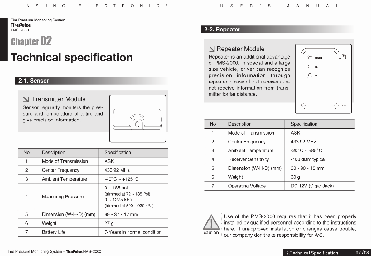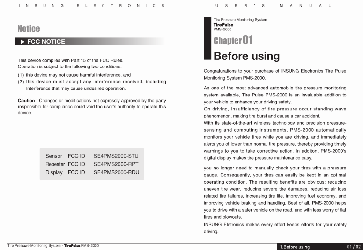 INSUNG Electronics PMS2000-STU Tire Pressure Monitor System (Transmitter) User Manual 1 of 4