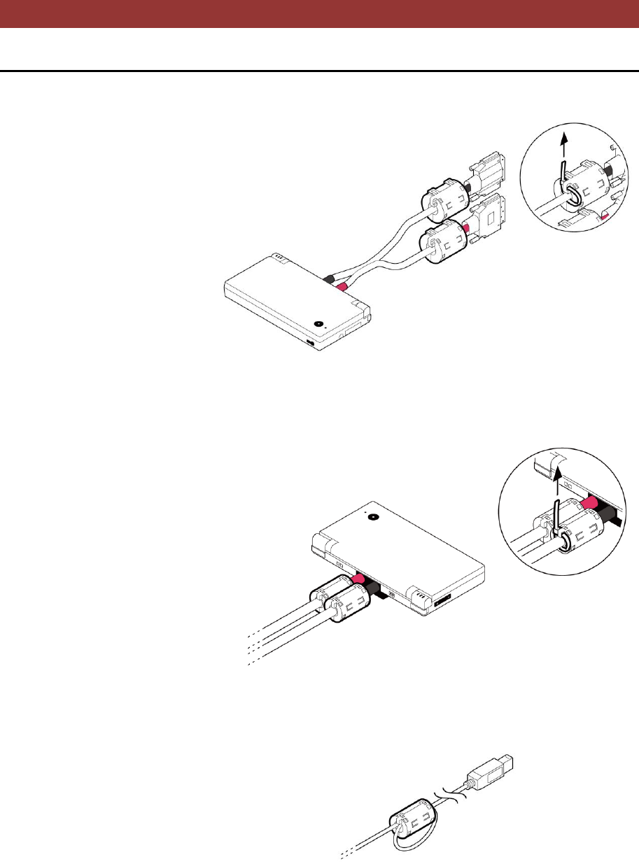 The following steps explain the install method for the IS-TWL-DEBUGGER hardware’s ferrite cores.