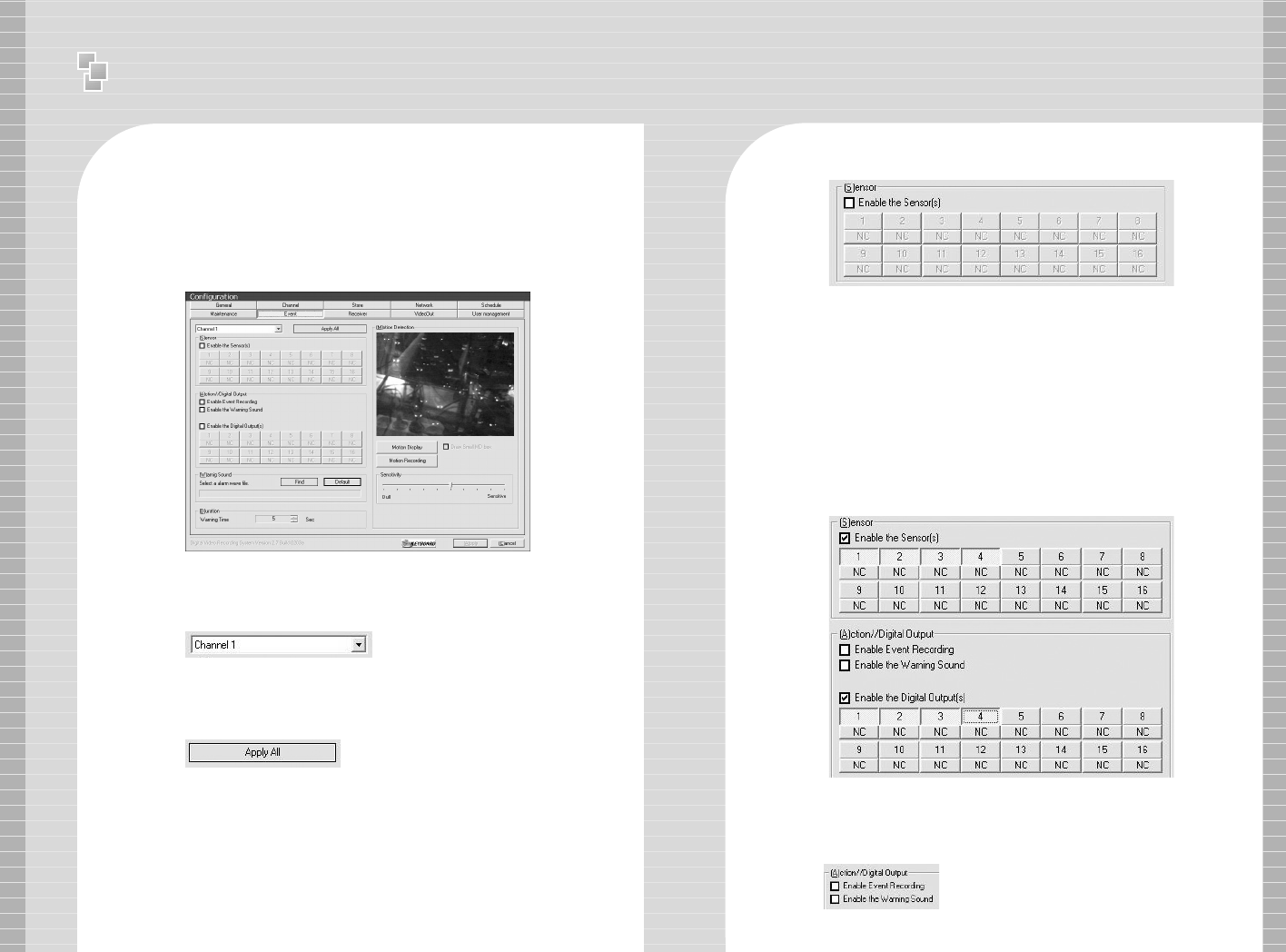 to control all channel, click [Apply All] after setup of [Sensor],