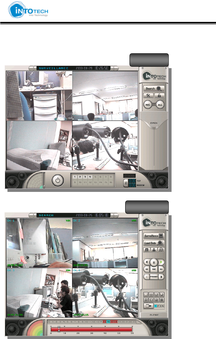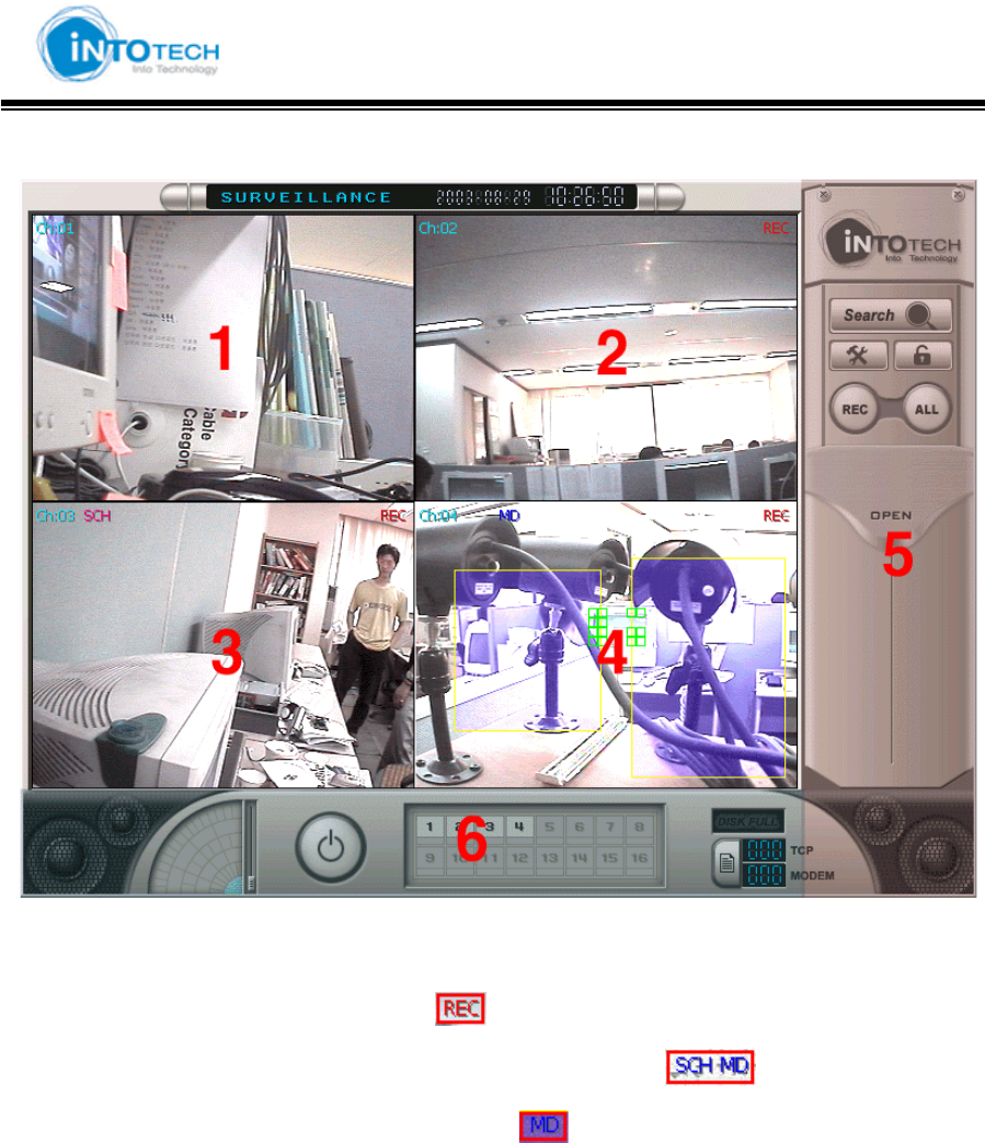 The main program operates Search, Backup, Recording, and every function to control DVR