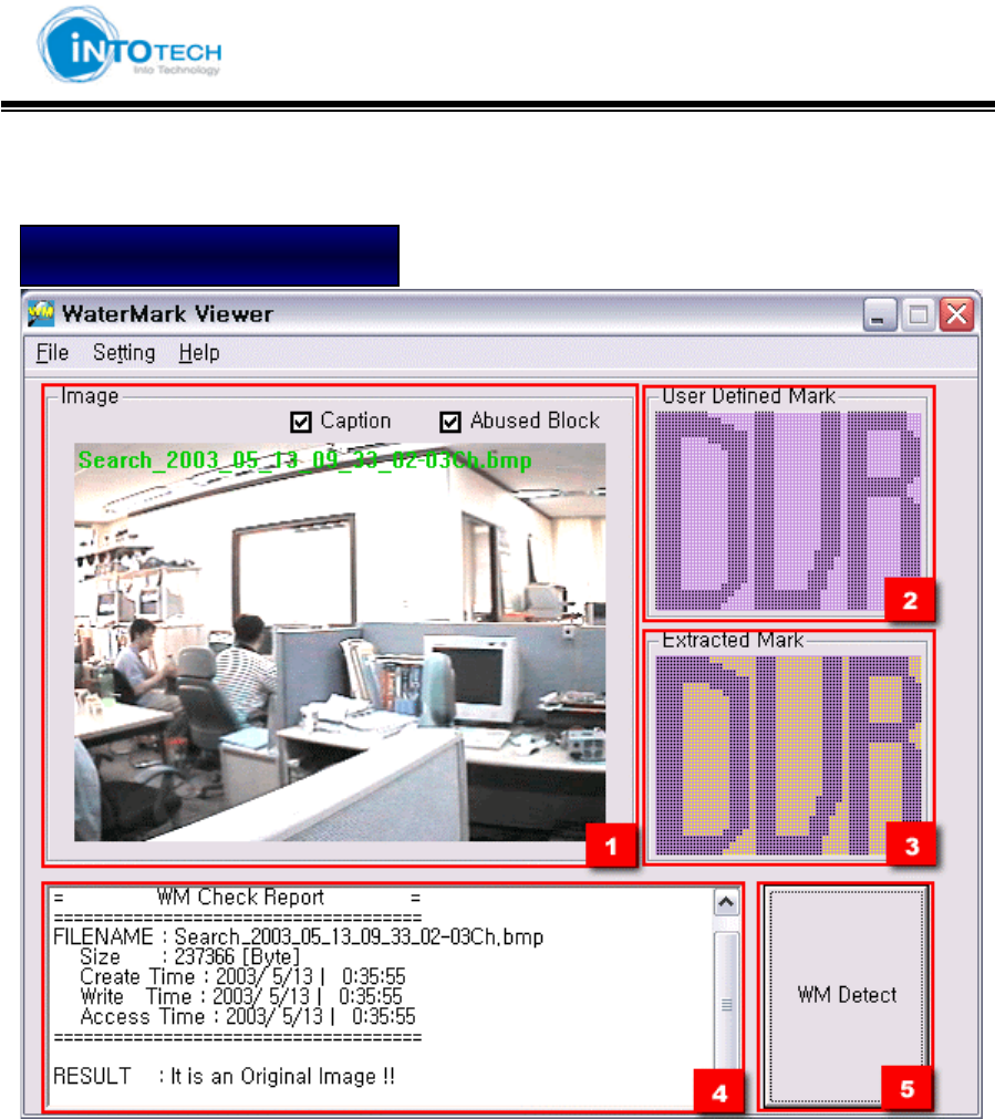 3 : Show Mark hidden in image (Display read color at tampered area)