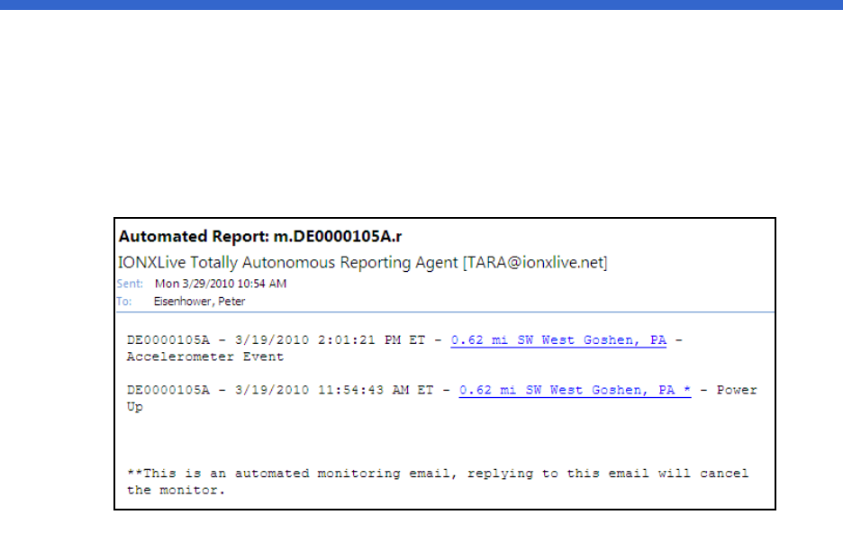 3.5 A second email will be sent from TARA, which is the most recent location report sent from
