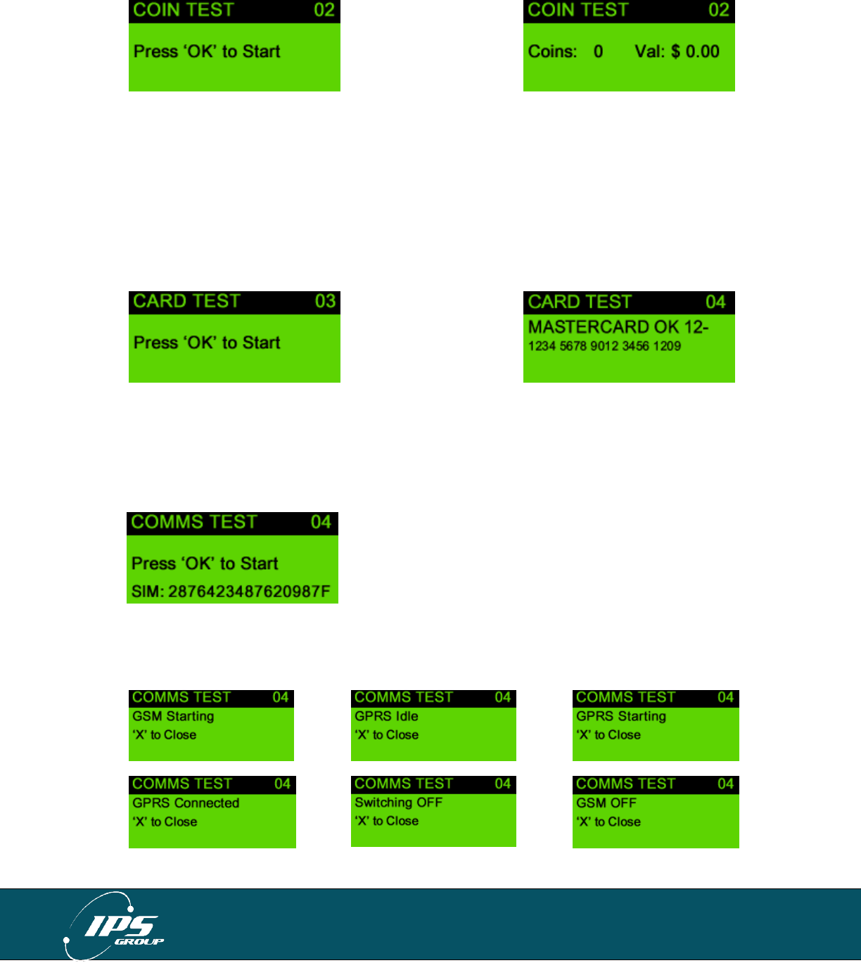 COMMS TEST menu when the meter is placed in Diagnostic Mode:
