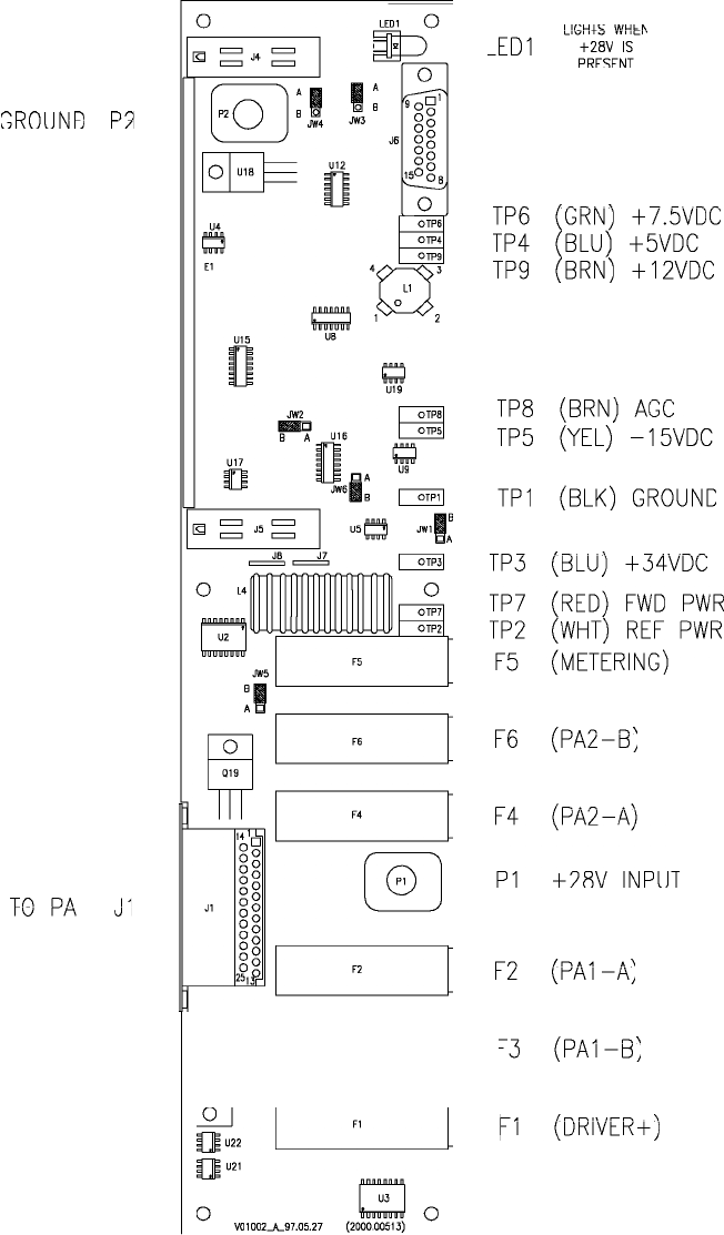 transmitter rear door and observe the row of fuses on the left, behind the 28VDC