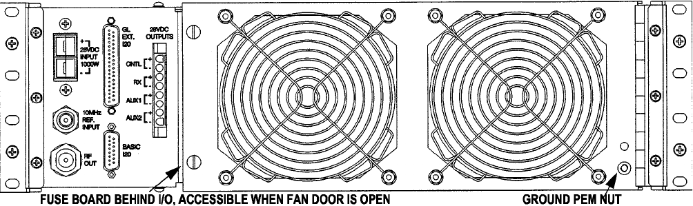 supplied to it. The fan fuses are located on the fuse board behind the I/O panel. Open the