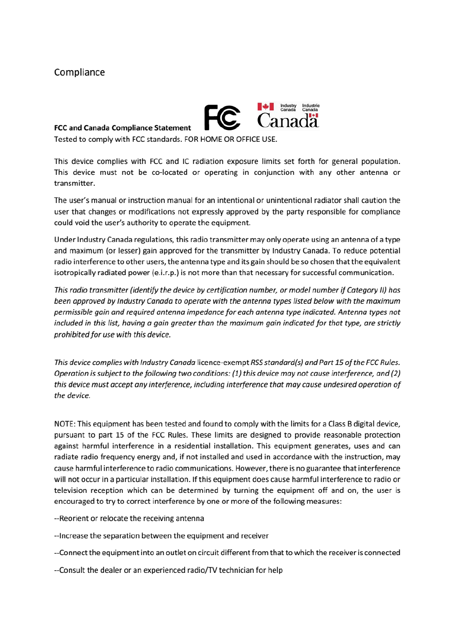 USER MANUAL (FCC AND IC STATEMENT)