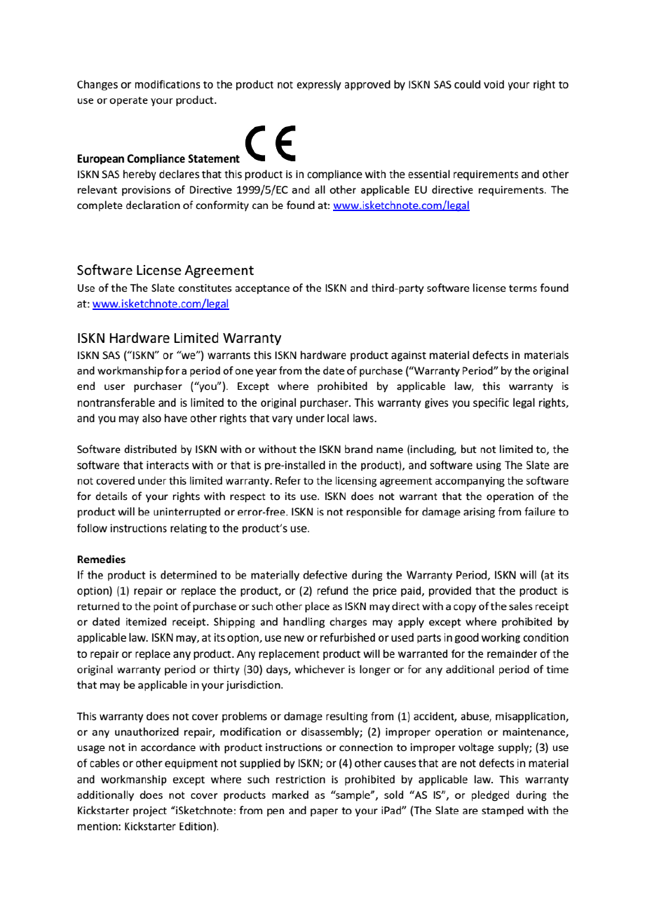 ISKN Bluetooth Digital Sketch Pad Users Manual