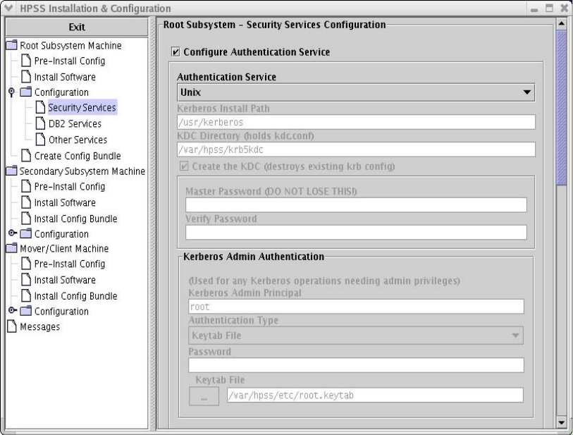and password for HPSS servers to use for Unix authentication with a keytab file.