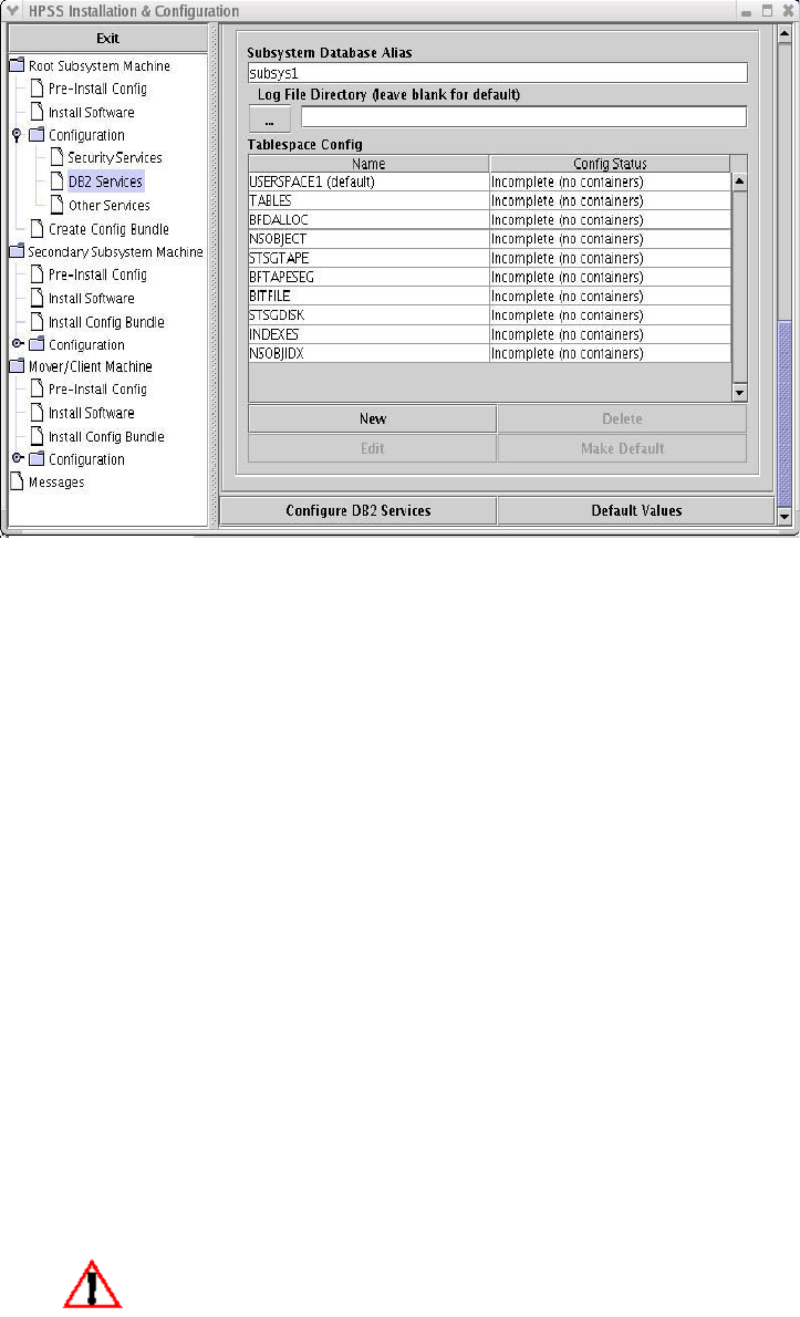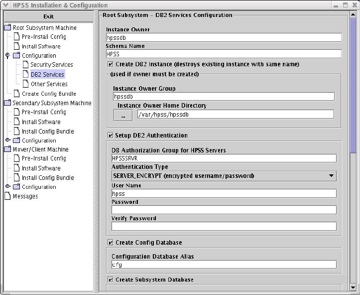 hpssdb. The directory to hold the DB2 instance configuration information and 'CFG' database tables.