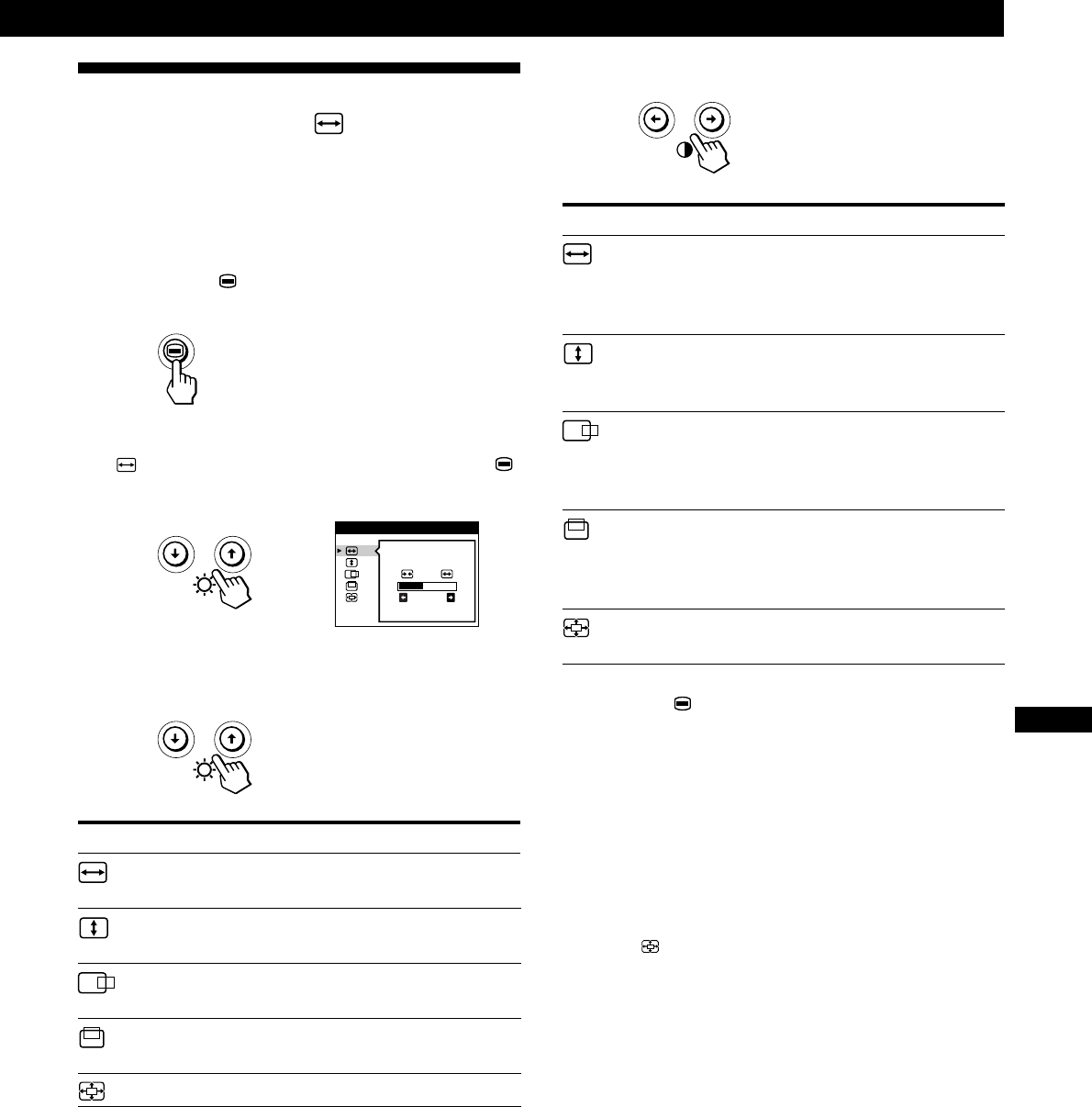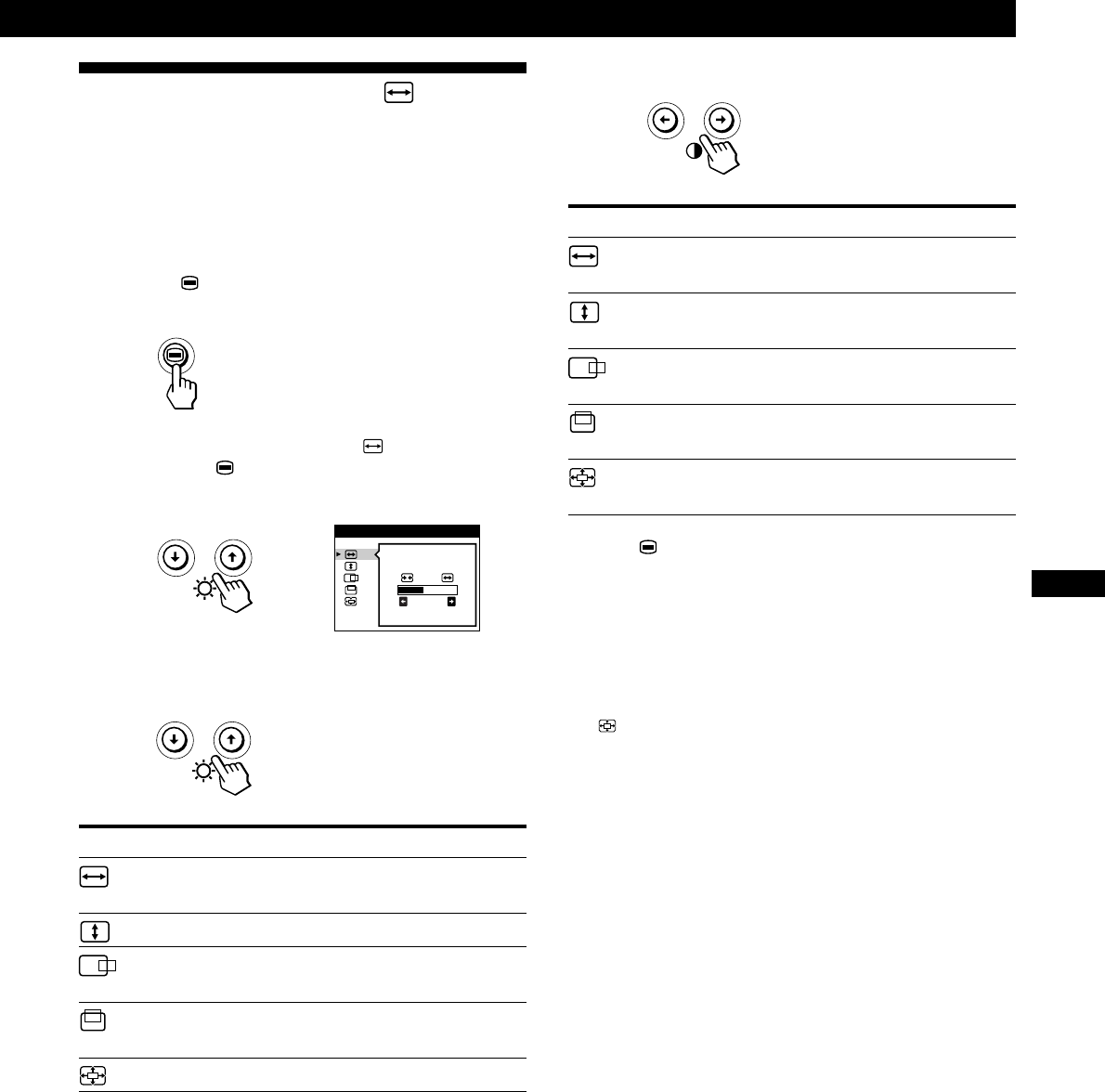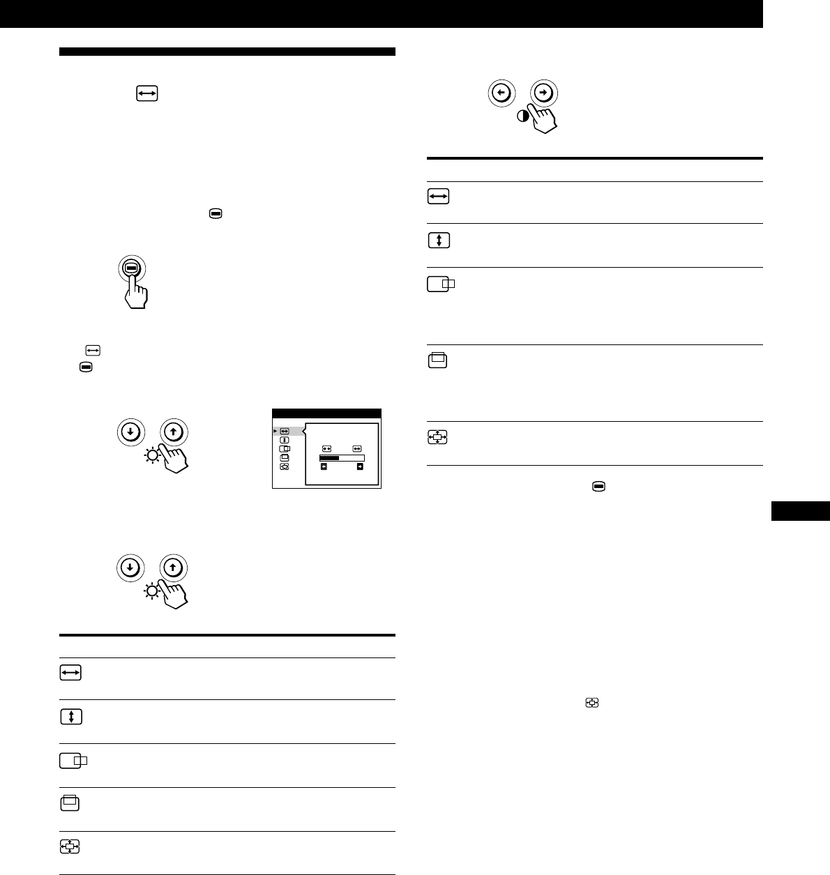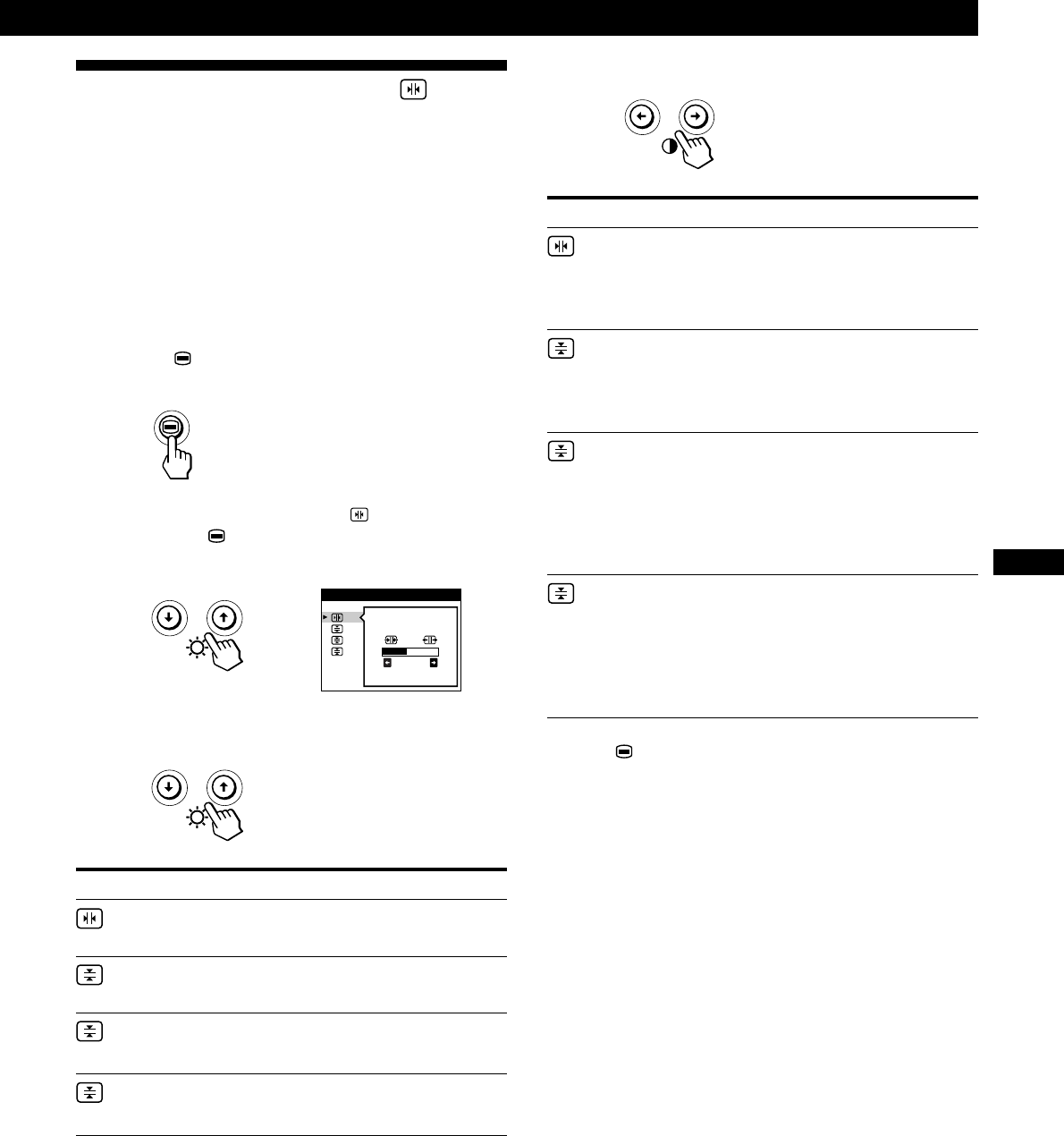 - Utilisation de l’écran de menu TAILLE/CENTRE