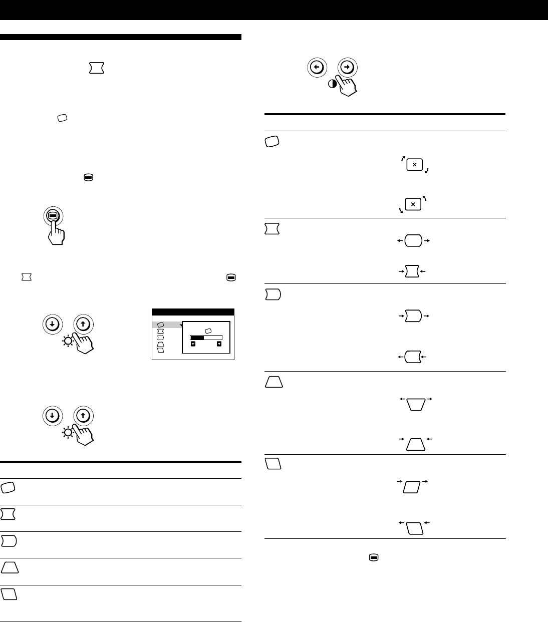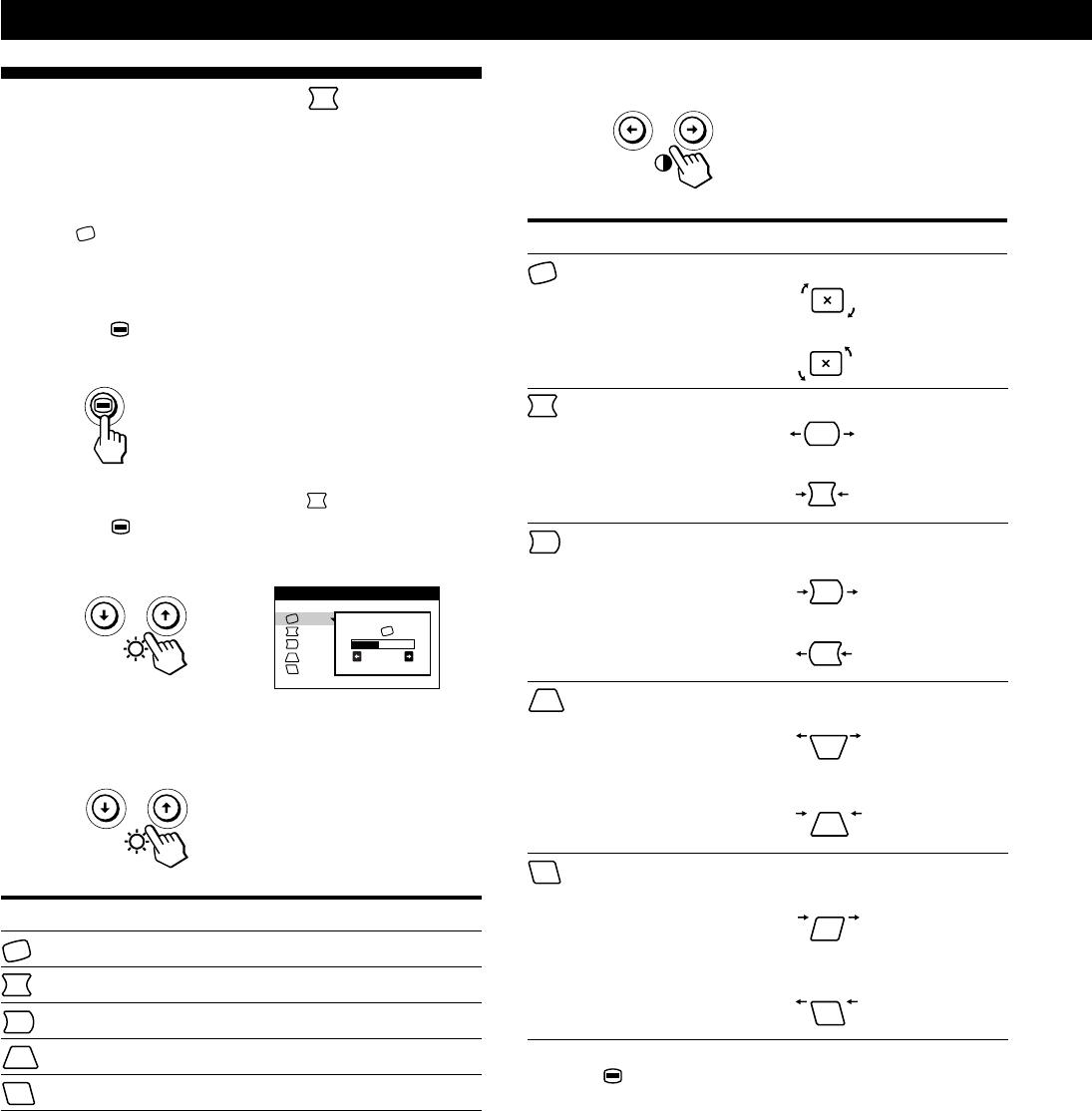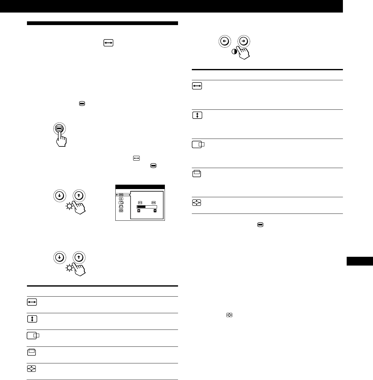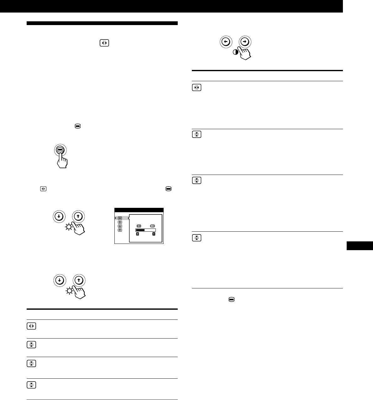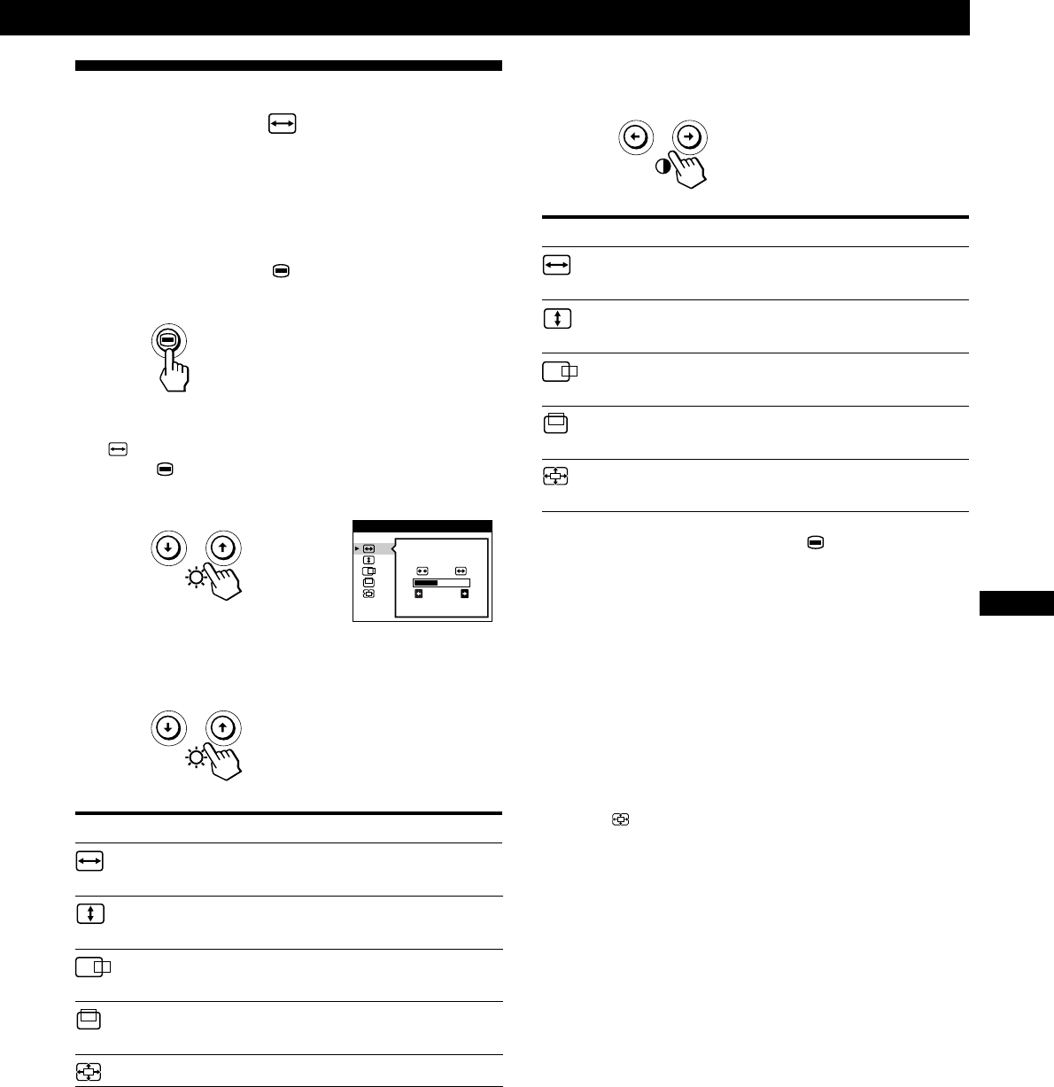 - Utilisation de l’écran de menu TAILLE/CENTRE