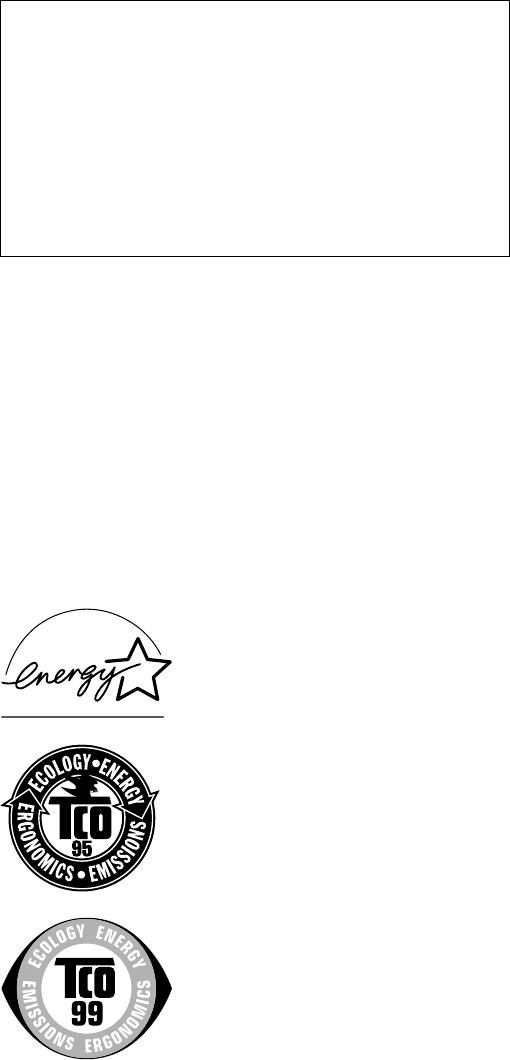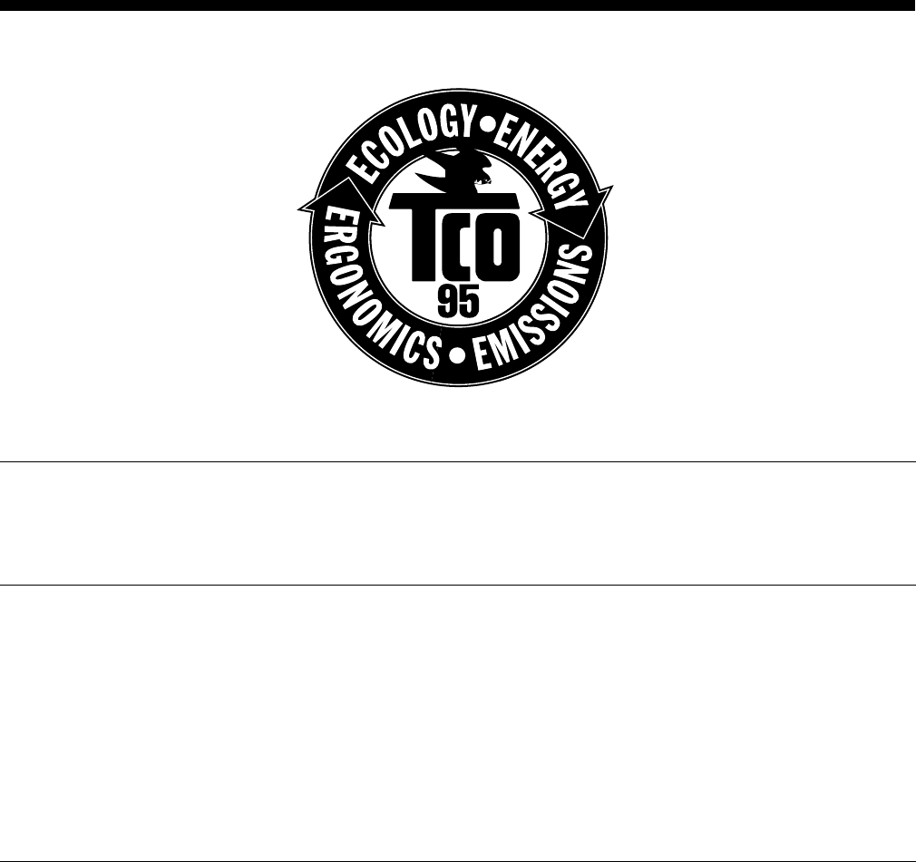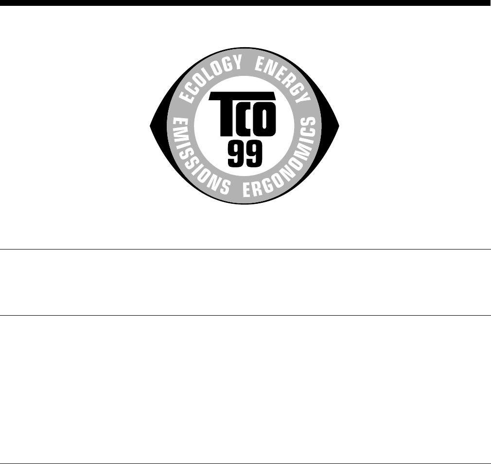 This product meets the requirements for the TCO’99 scheme which provides for international and environmental labelling of