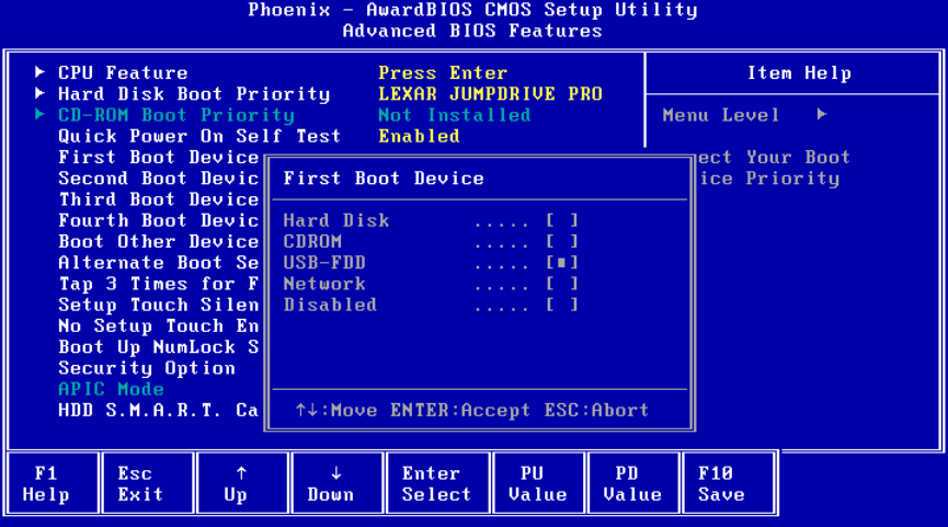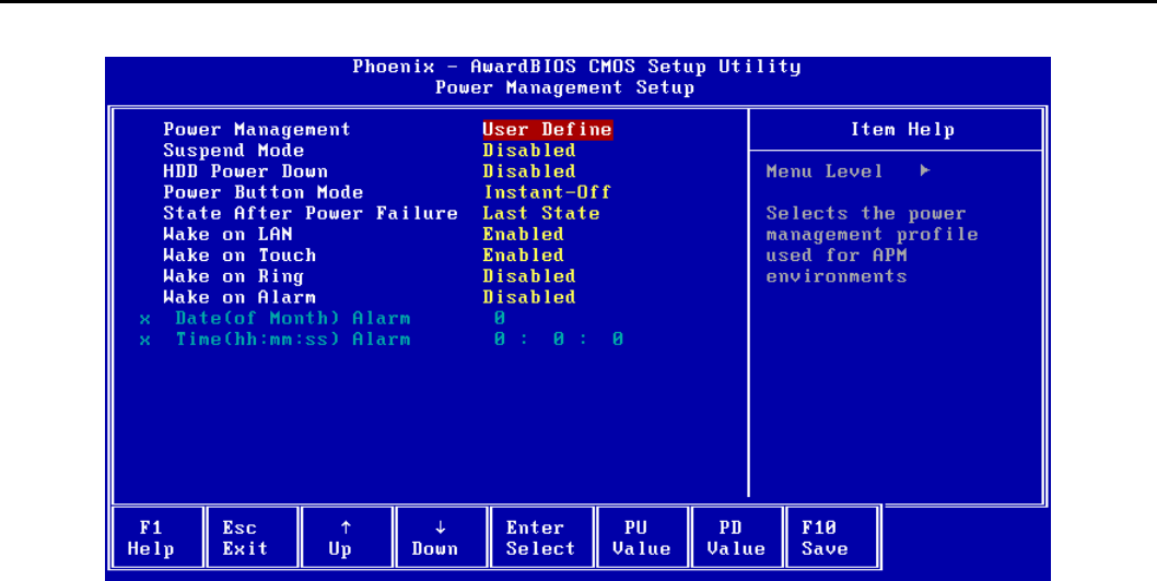 Selects the timeout for powering down the hard disk in APM environments. After the selected amount of inactivity