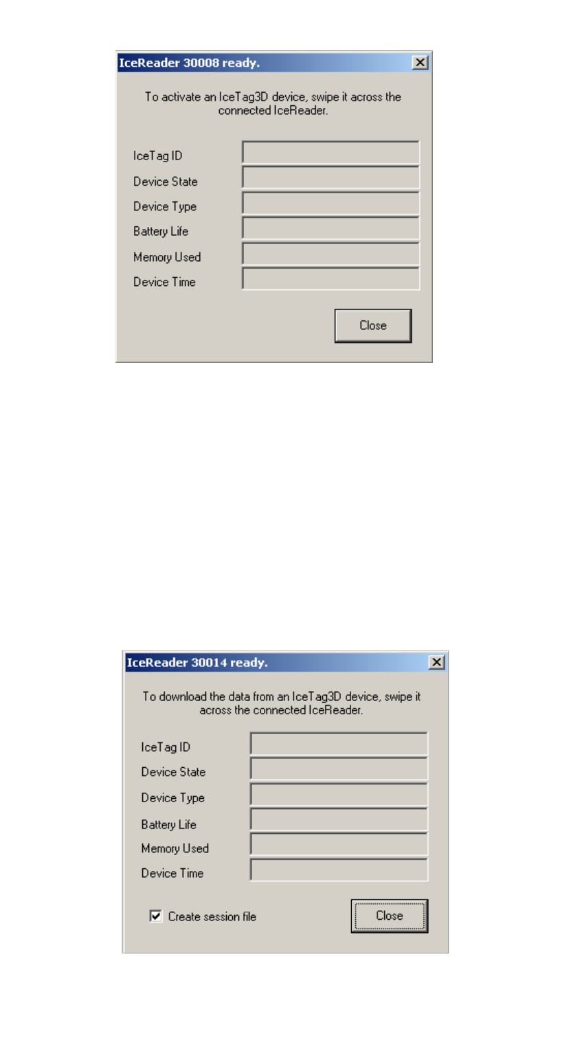 IceTag3D (wireless device) > Download IceTag3D session data, swipe the IceTag3D and try