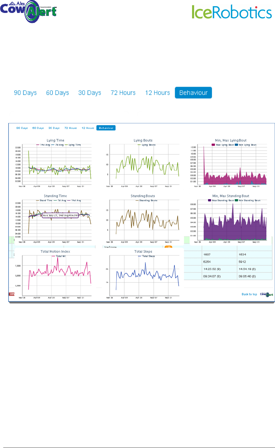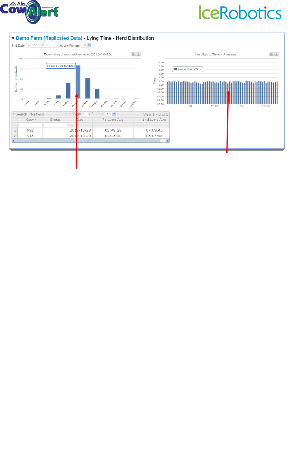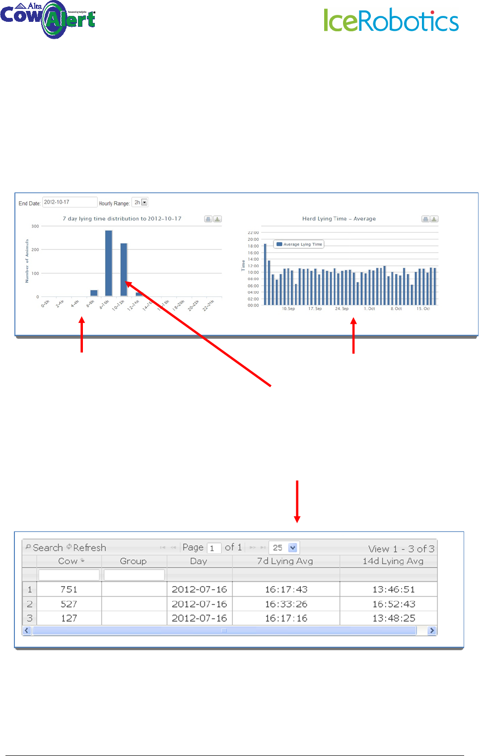 From the Navigation bar select Reports: Lying Time. This will show 2 graphs. The left hand graph