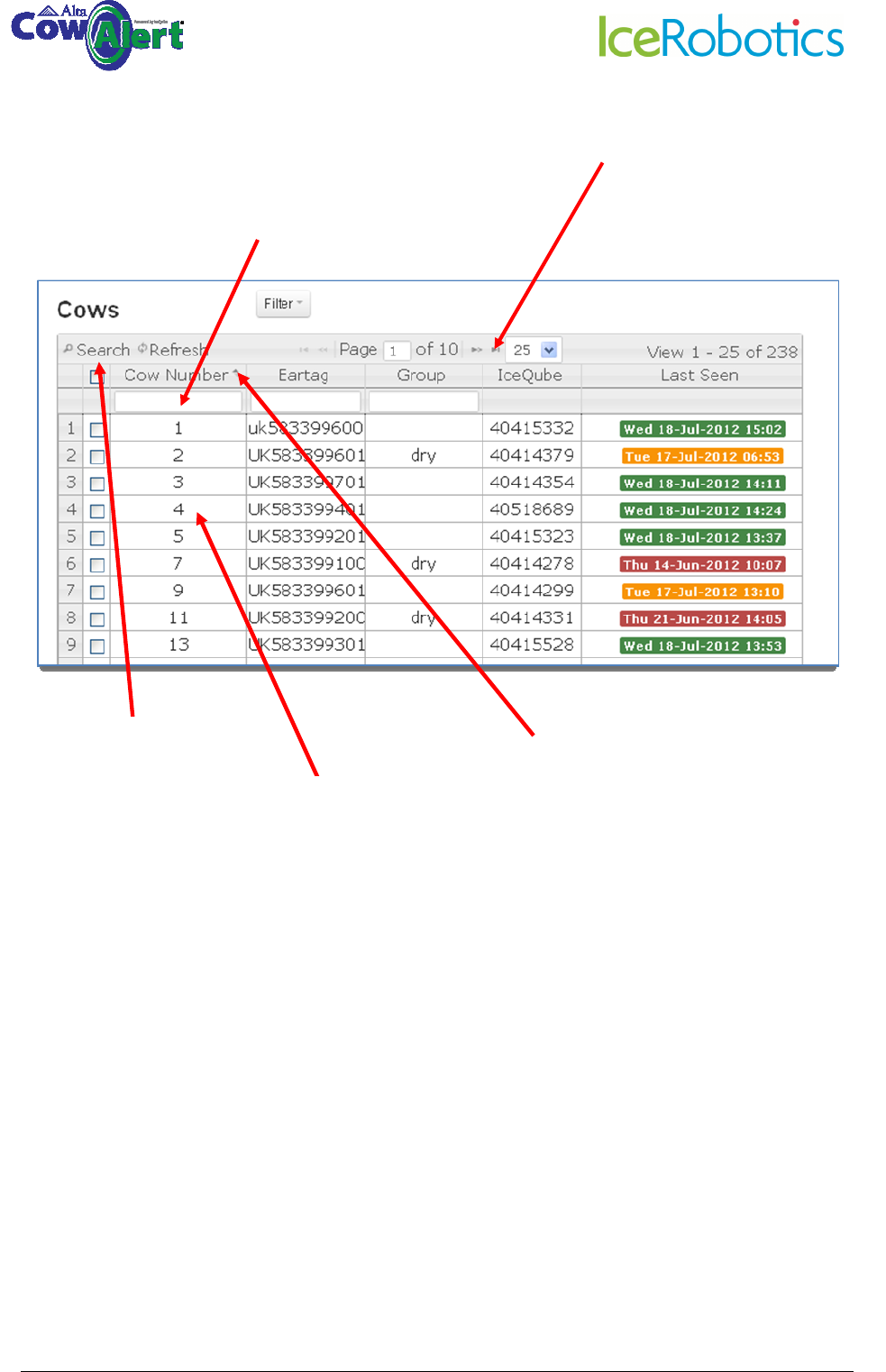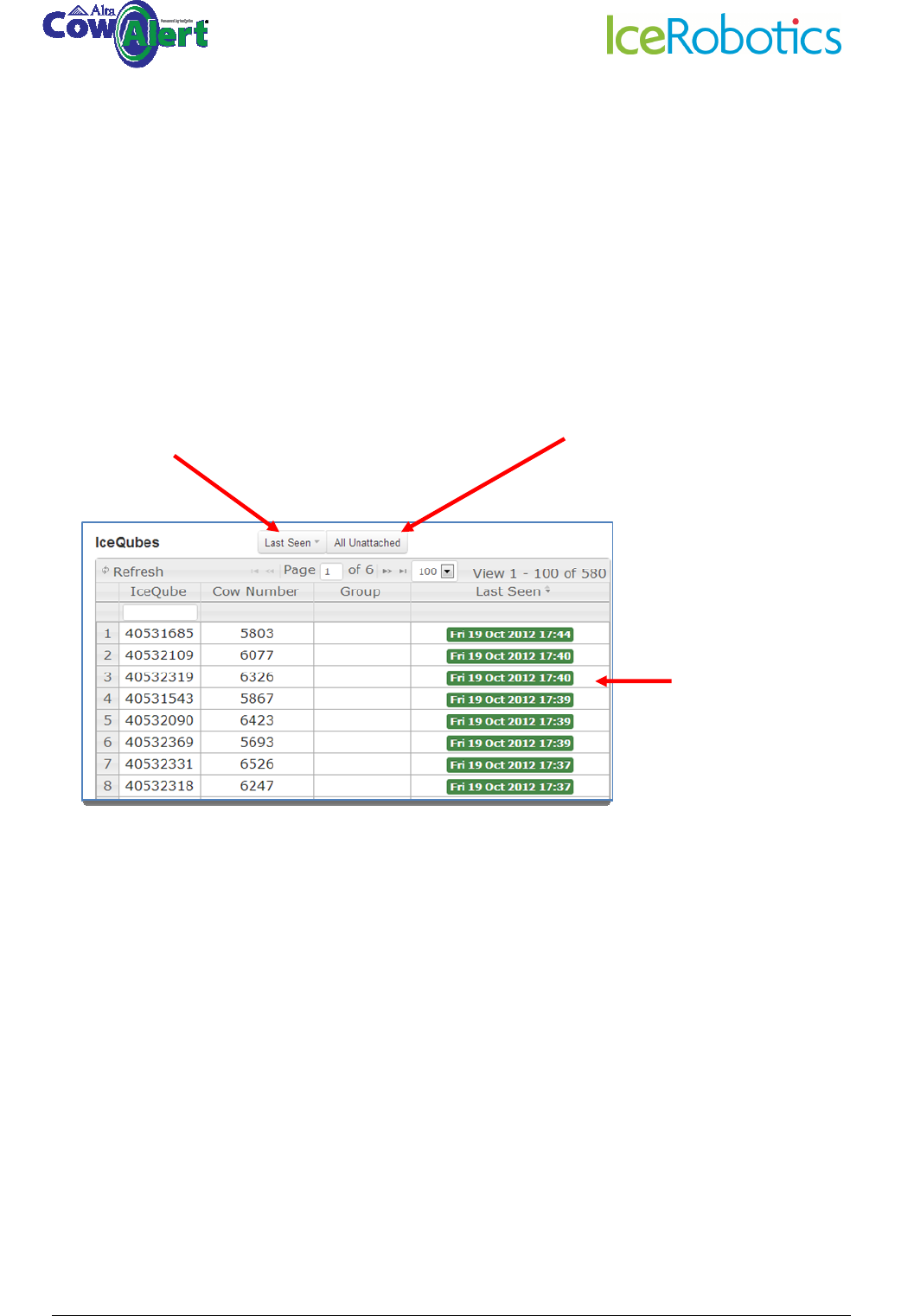 This list shows all IceQubes on site and the associated Cow to which they are attached. Various